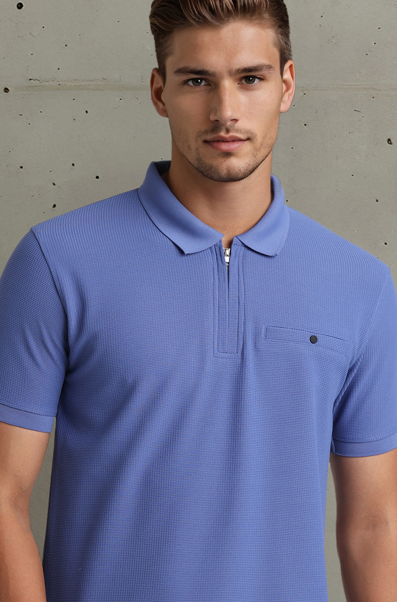 Featuring a clean zipper closure, this men's solid polo t-shirt is crafted from lightweight, breathable, and moisture-wicking fabric. Whether you're training or out on a run, it delivers all-day comfort with a polished edge.