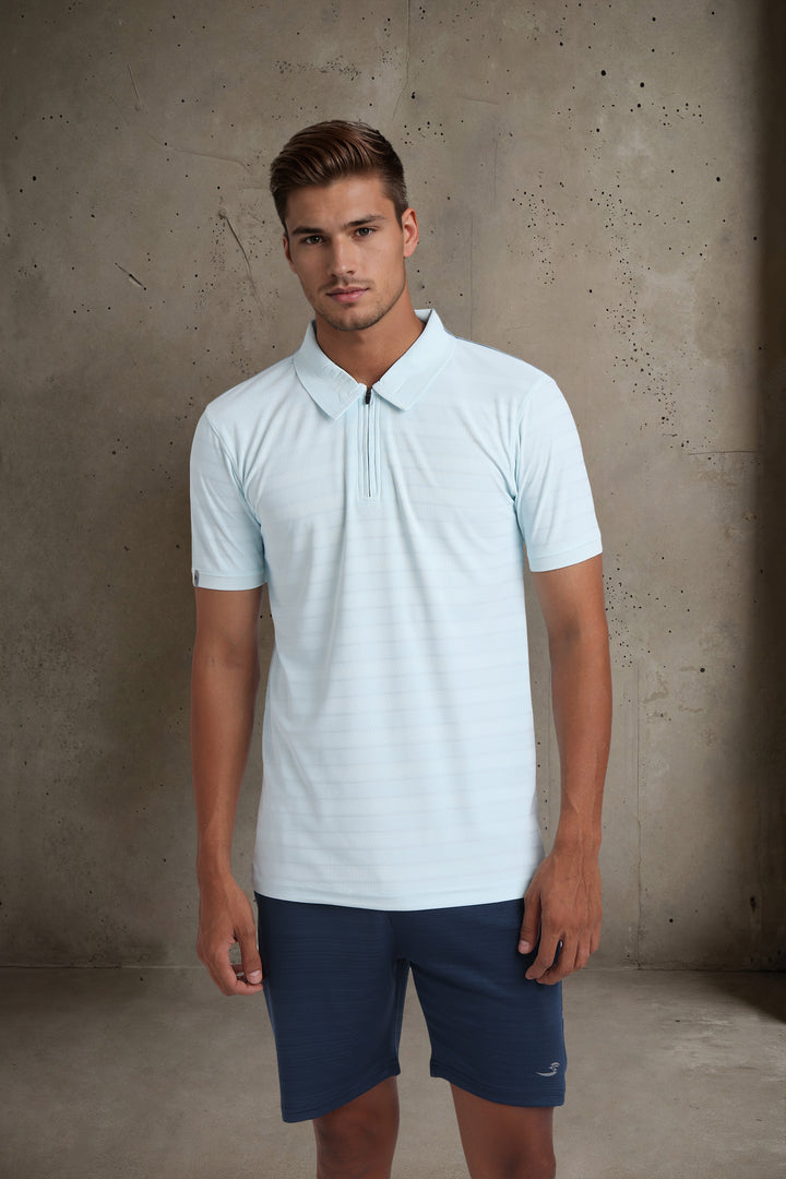 This men’s solid slim fit polo t-shirt with a zipper closure offers a streamlined look and performance-ready comfort. Made from moisture-wicking, breathable, and lightweight fabric, it’s ideal for running, yoga, or training.