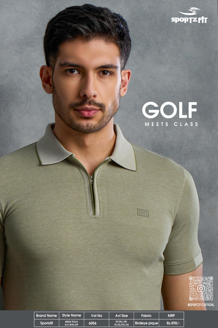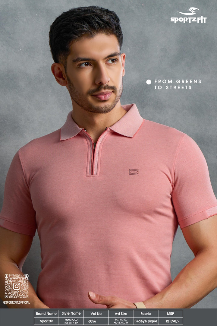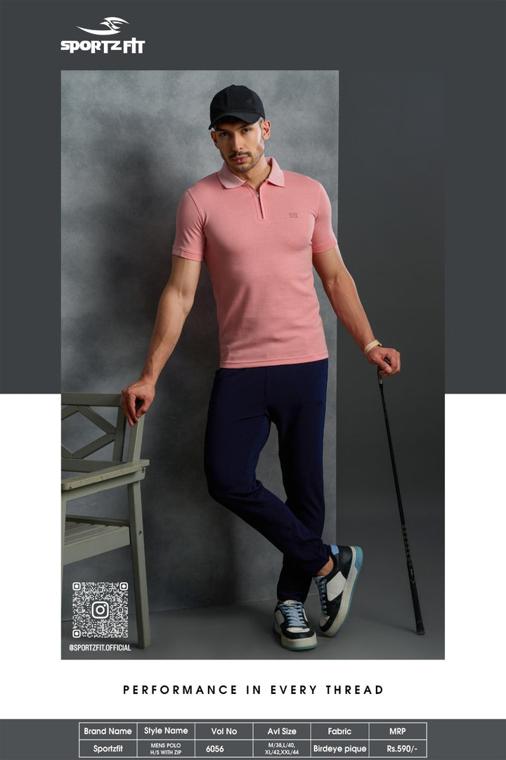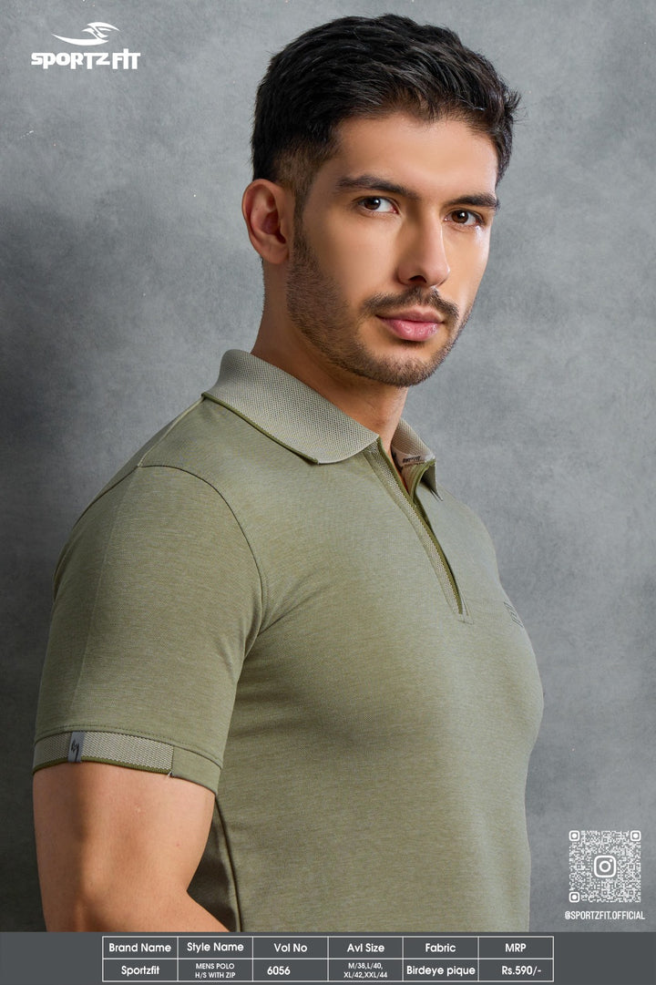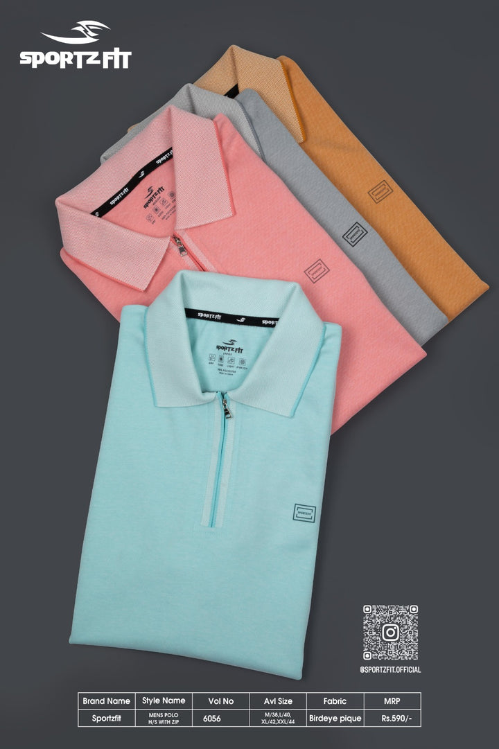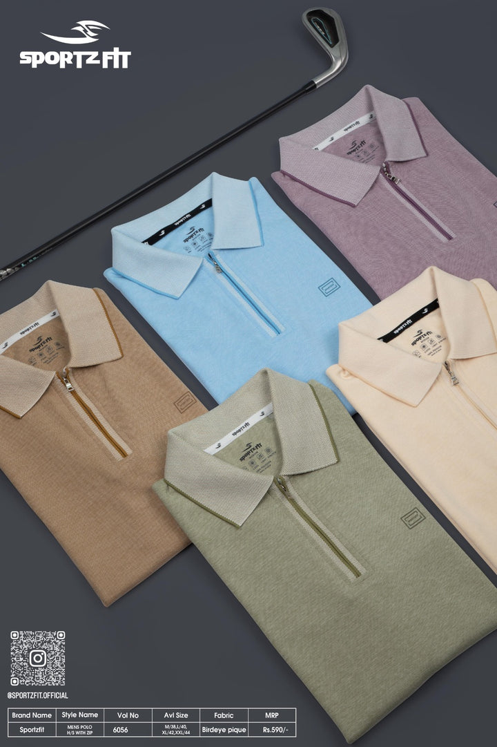 Men's Bird Eye Pique Solid Polo T-shirt with Zip Placket (6056)
