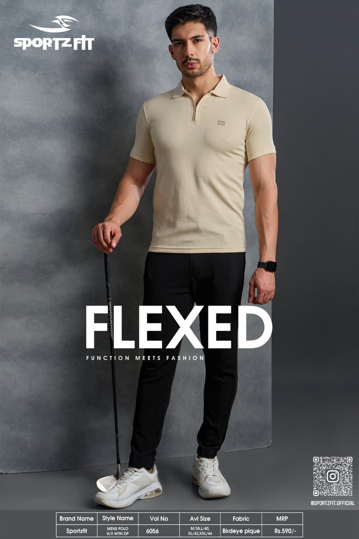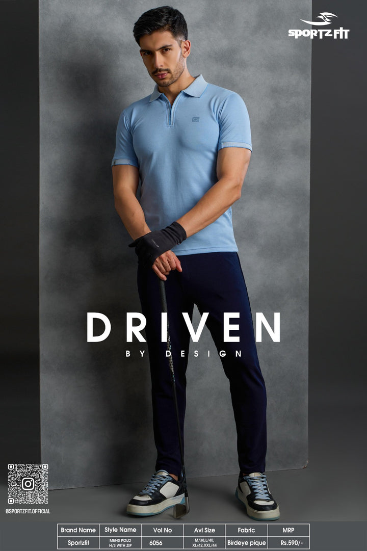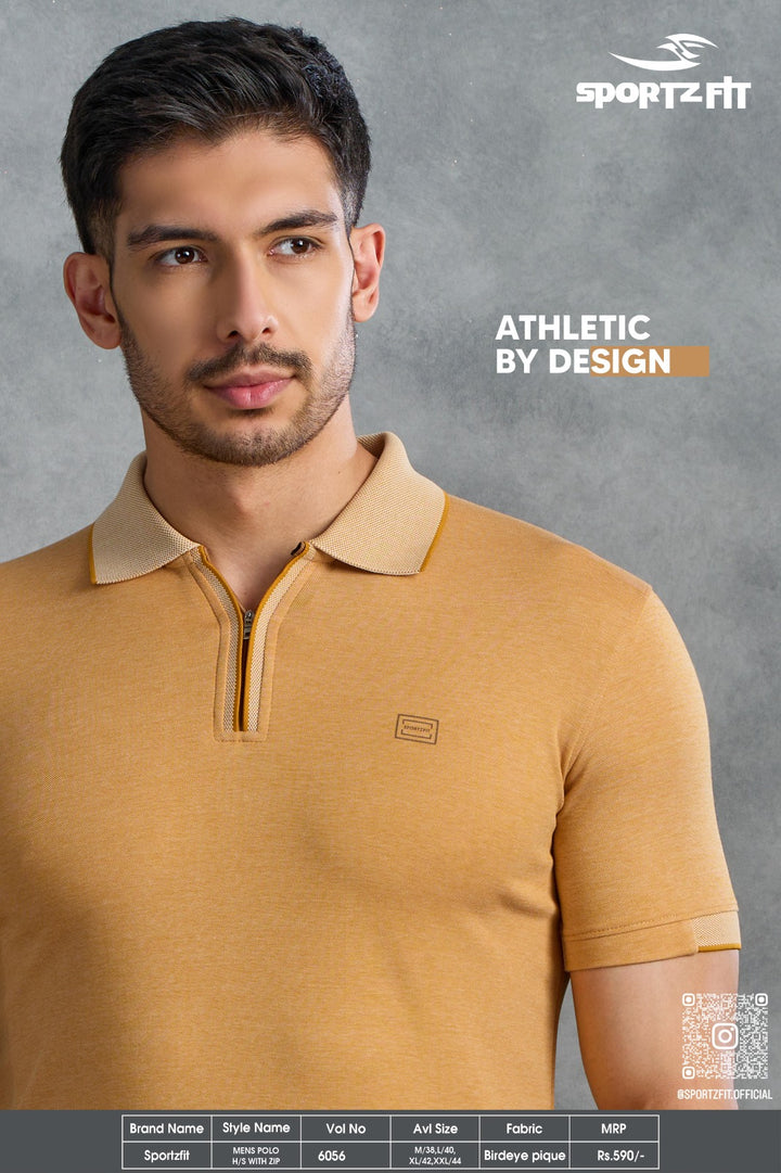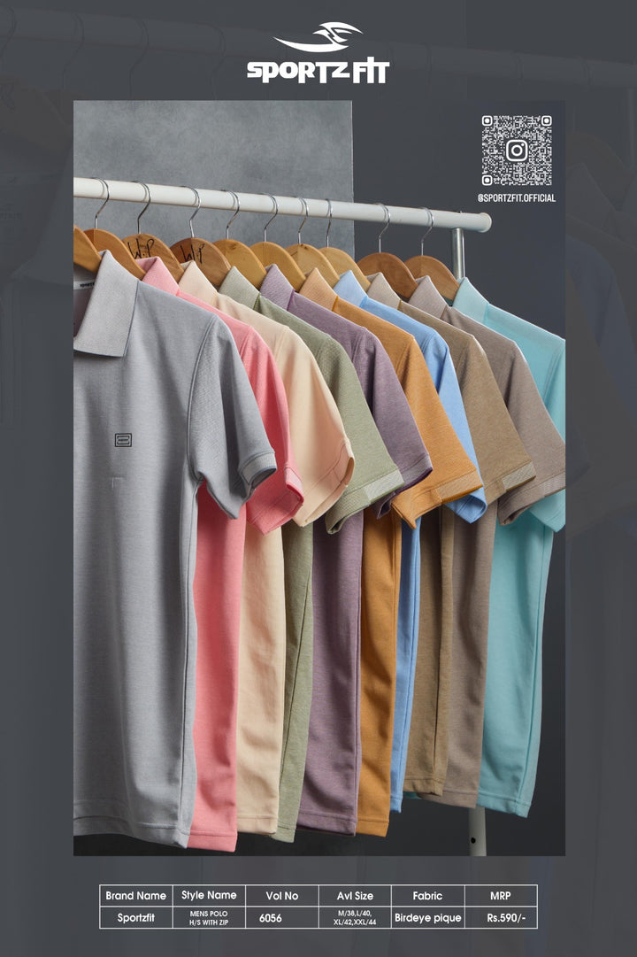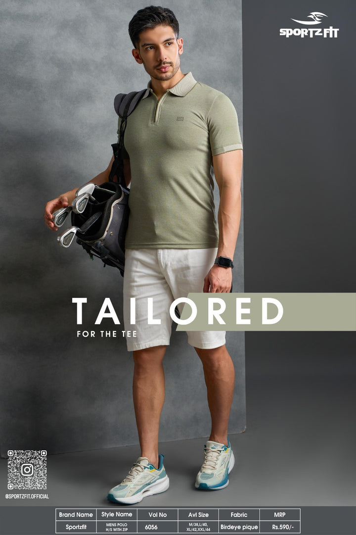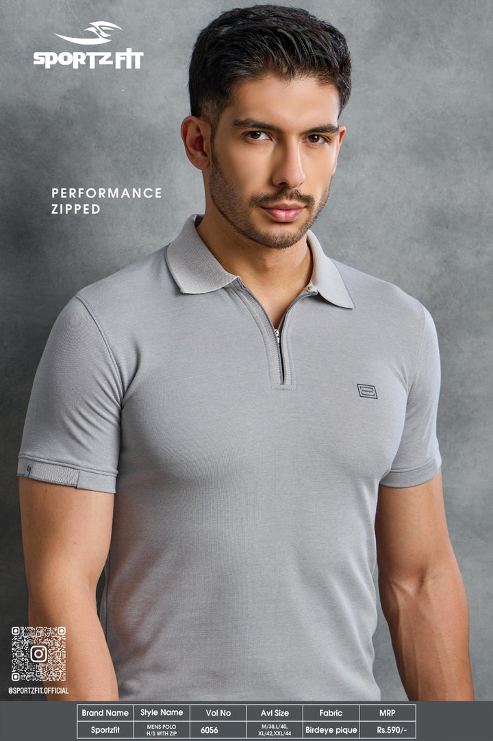 Men's Bird Eye Pique Solid Polo T-shirt with Zip Placket (6056)