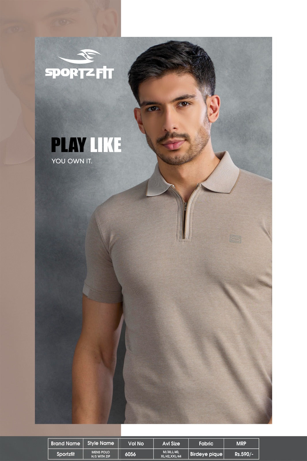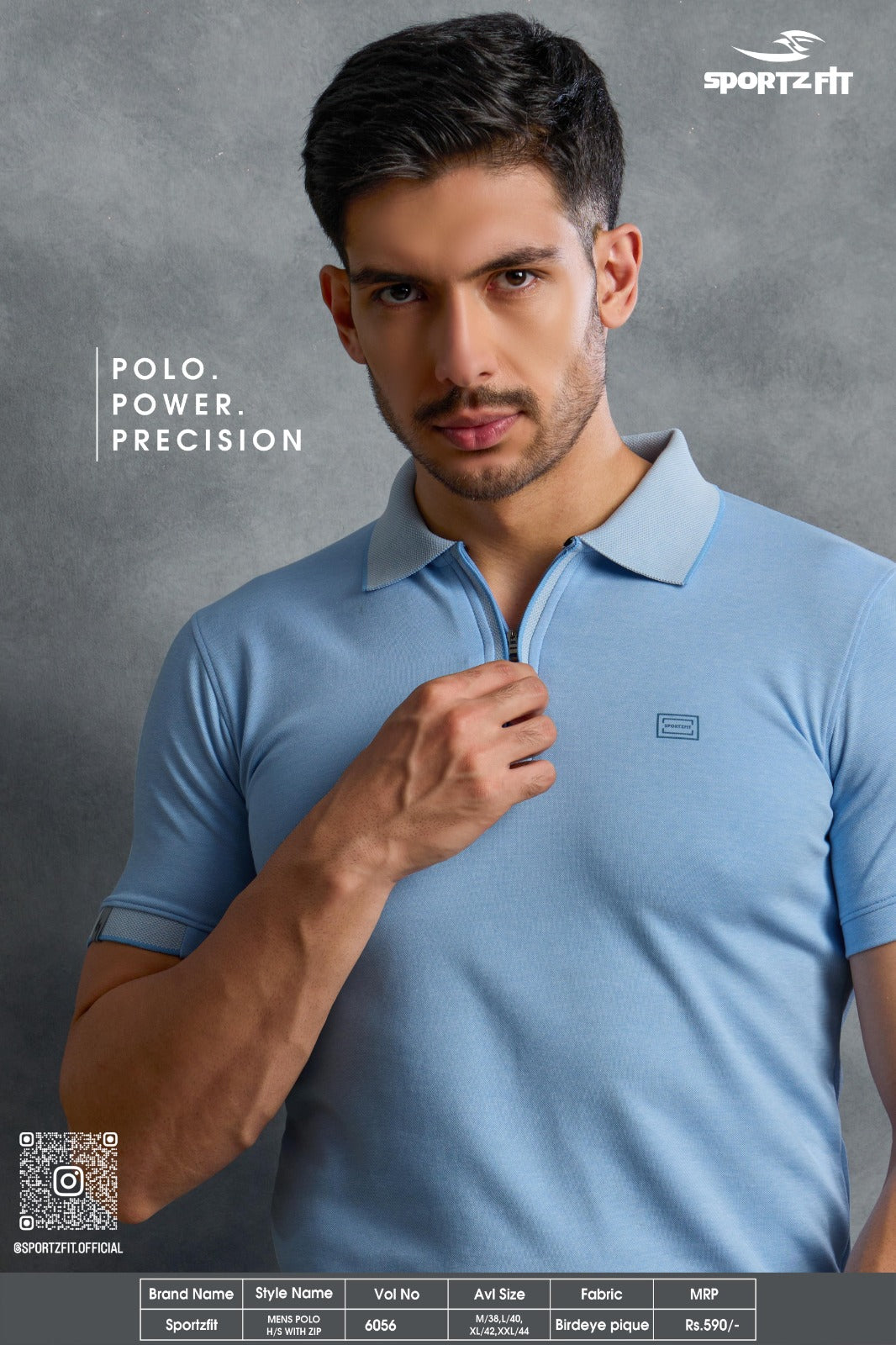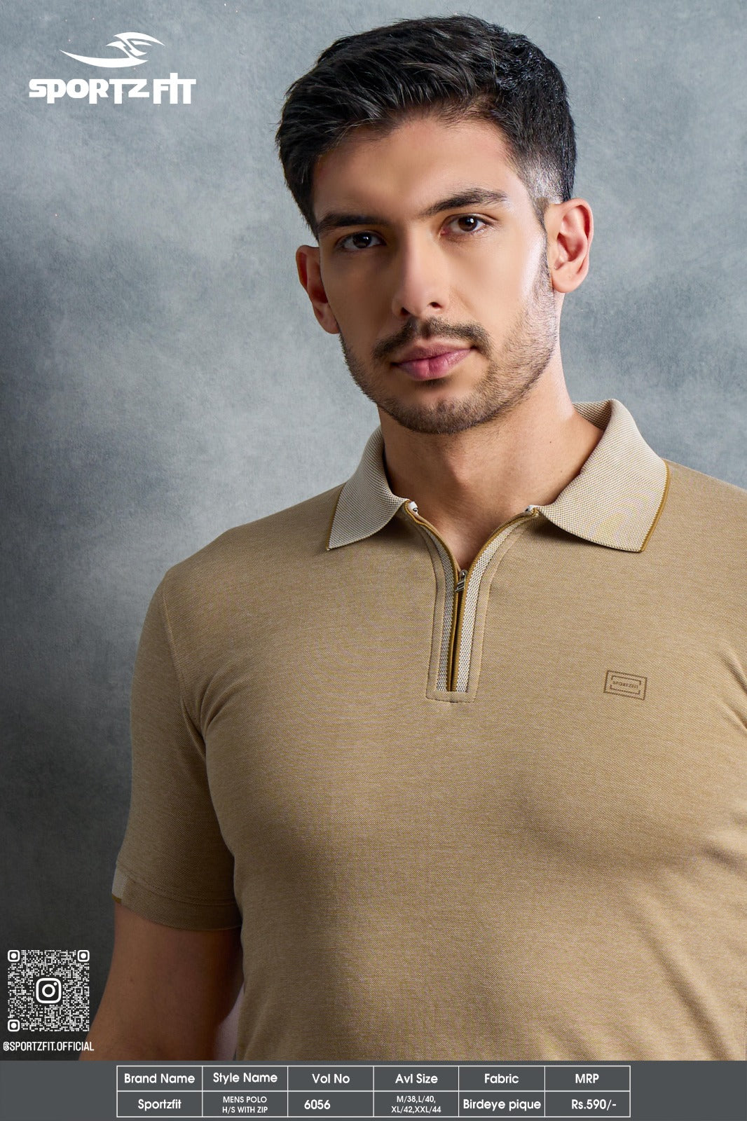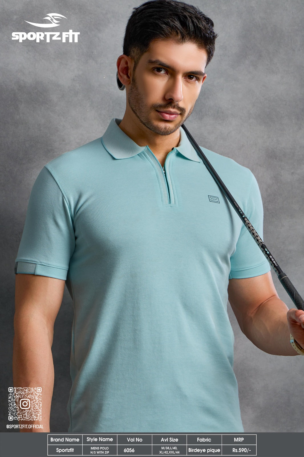 Men's Bird Eye Pique Solid Polo T-shirt with Zip Placket (6056)