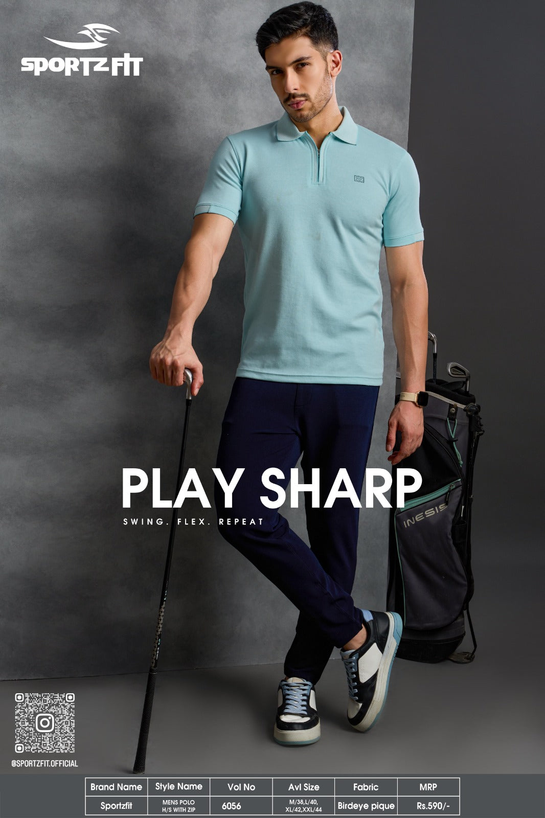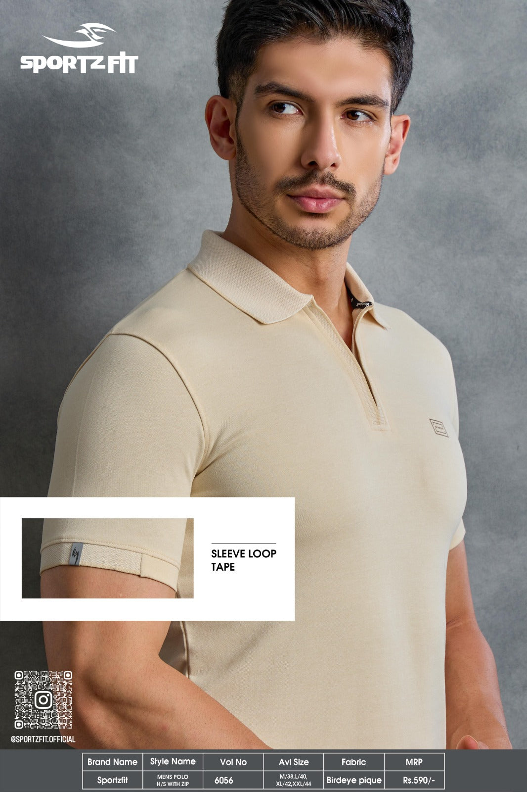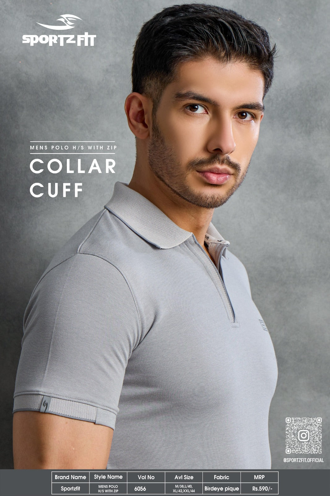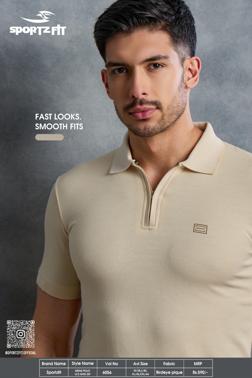 Men's Bird Eye Pique Solid Polo T-shirt with Zip Placket (6056)