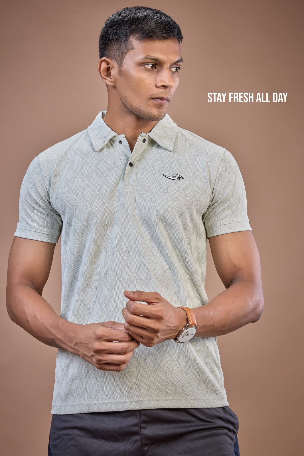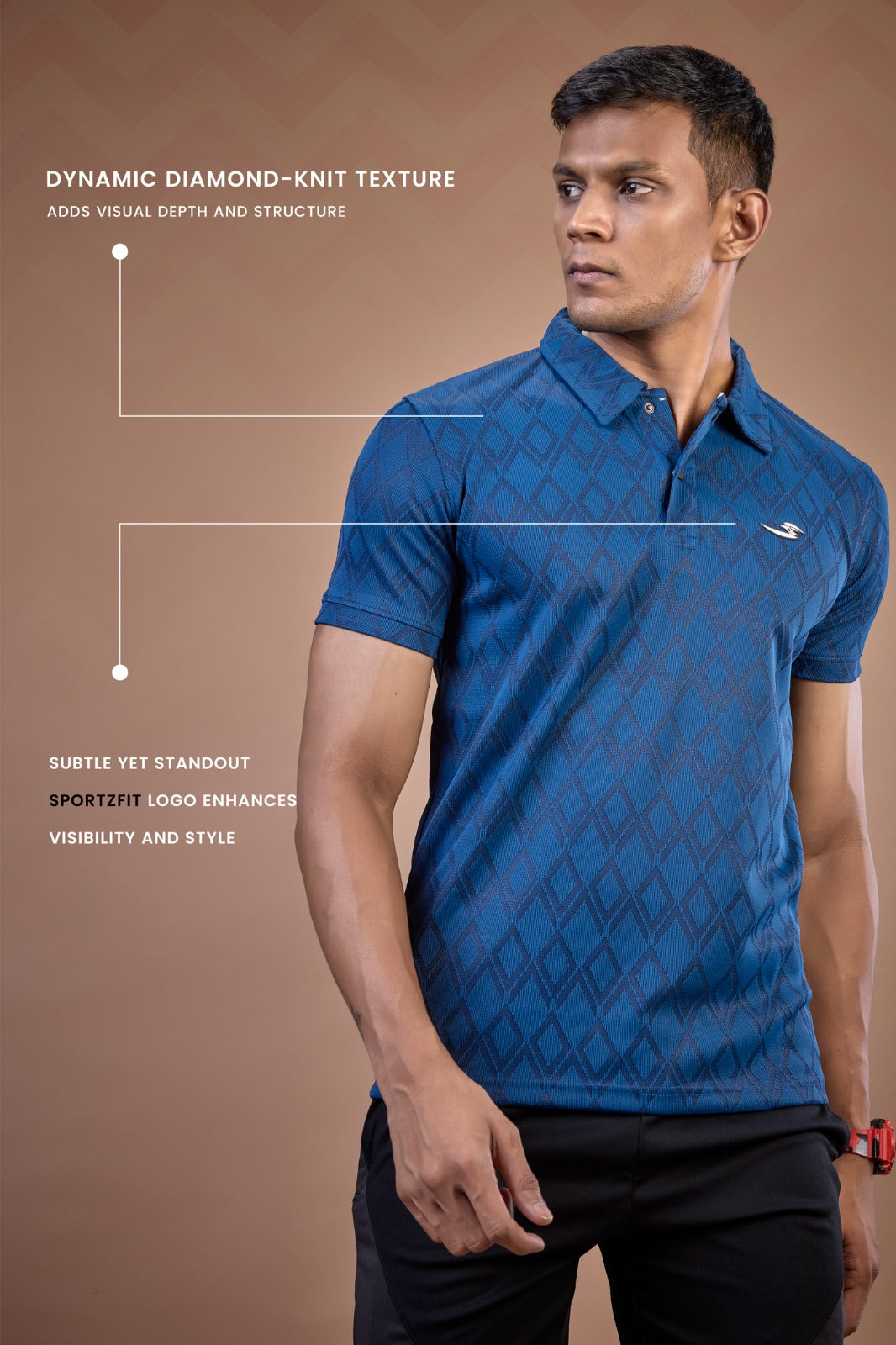 This isn’t just a T-shirt — it’s precision in motion. Featuring a striking diamond jacquard texture and minimal logo detailing, it blends activewear performance with everyday style. Designed to move with you, it keeps you comfortable and sharp whether you’re pushing limits or powering through your day.