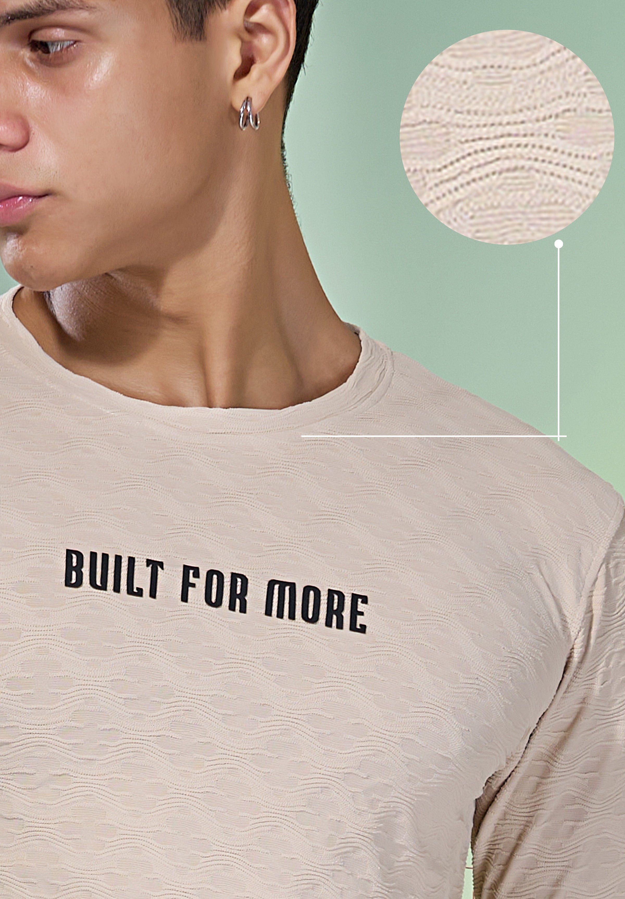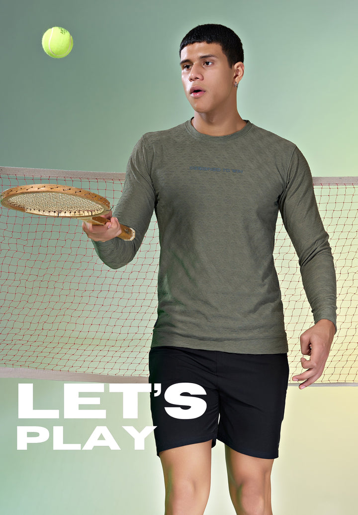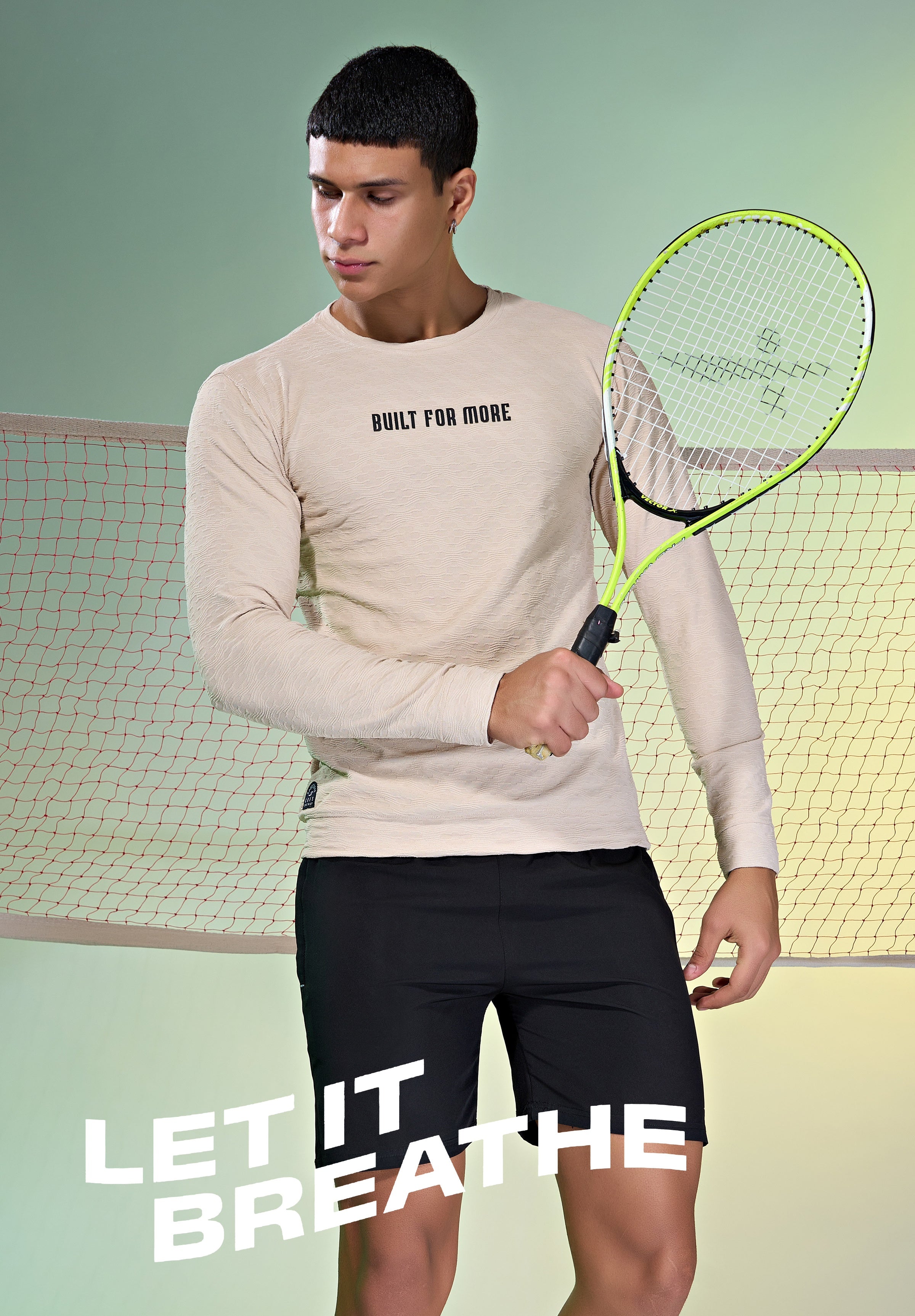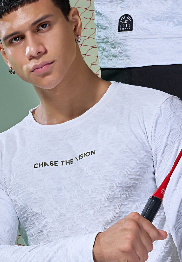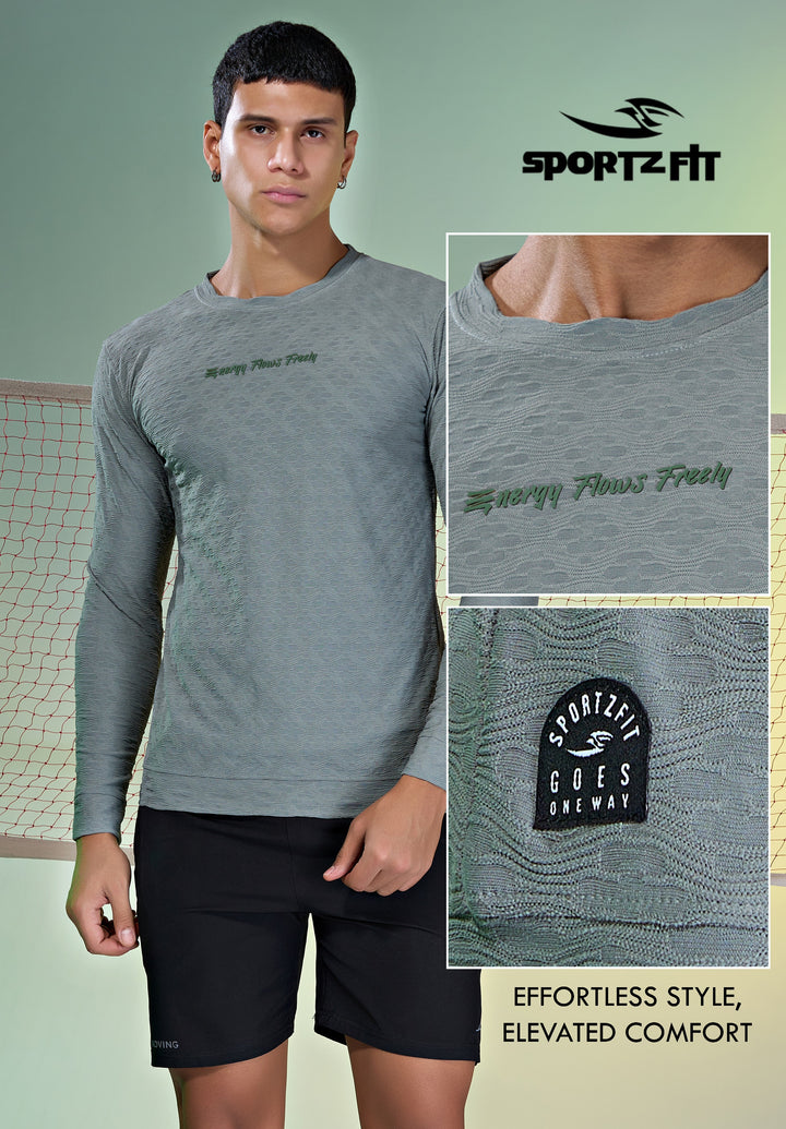 Engineered in breathable Jacquard fabric, this crew neck full-sleeve tee delivers lightweight comfort with the perfect balance of stretch and durability. Designed with an ideal GSM, it keeps you cool during workouts and warm during cooldowns. The textured pattern adds a bold, athletic touch, making it perfect for training, travel, or everyday wear.