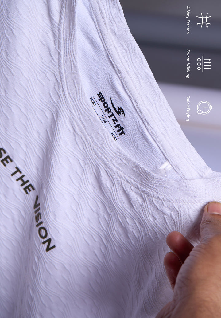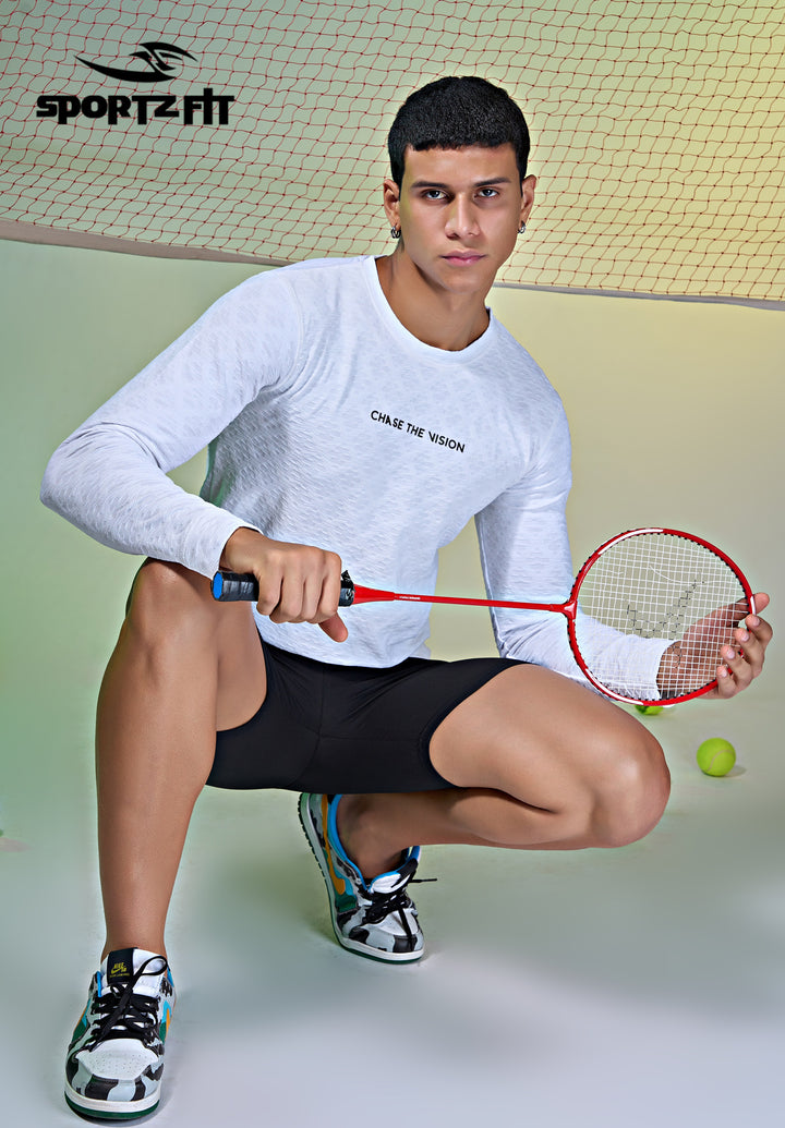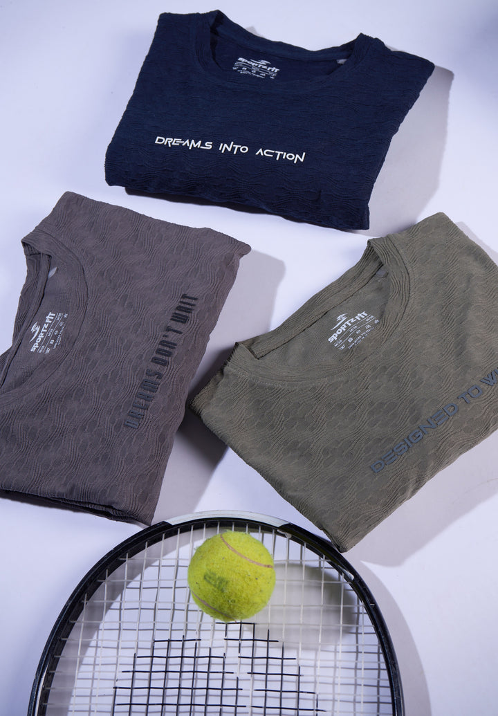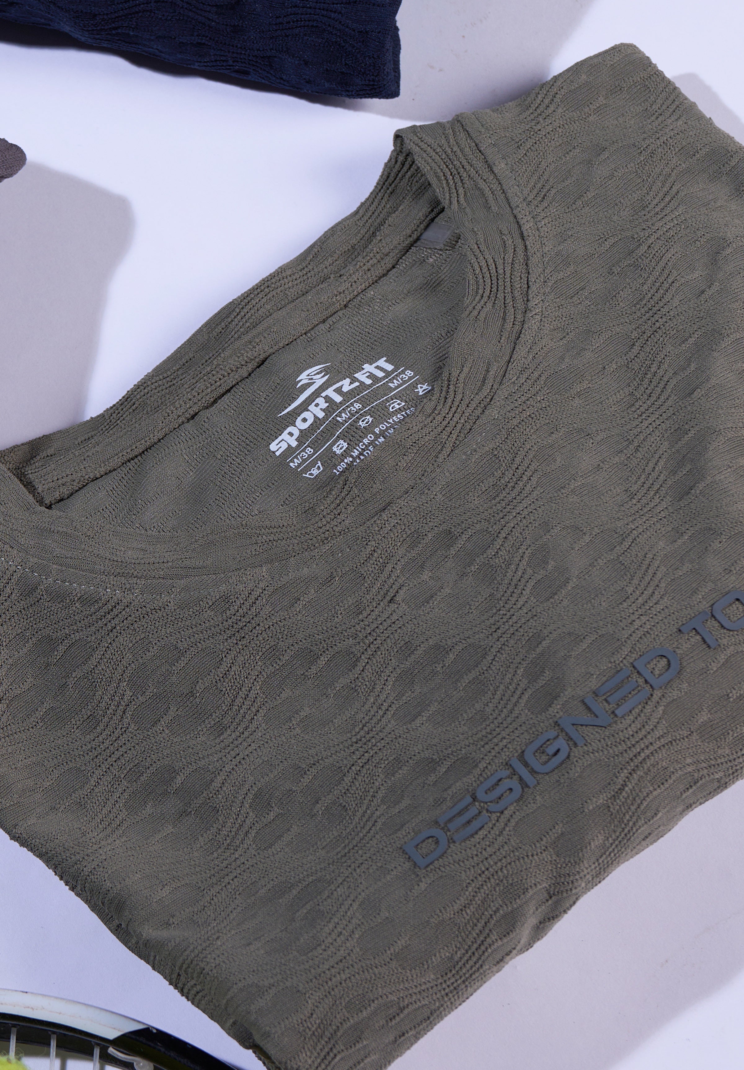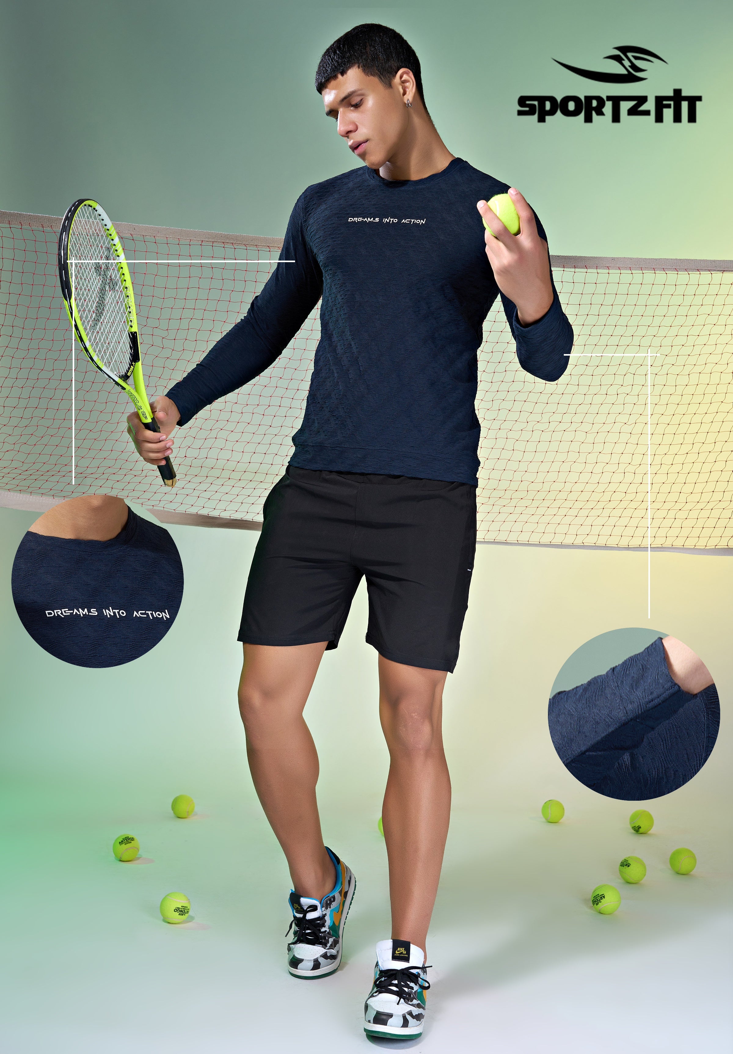 Engineered in breathable Jacquard fabric, this crew neck full-sleeve tee delivers lightweight comfort with the perfect balance of stretch and durability. Designed with an ideal GSM, it keeps you cool during workouts and warm during cooldowns. The textured pattern adds a bold, athletic touch, making it perfect for training, travel, or everyday wear.