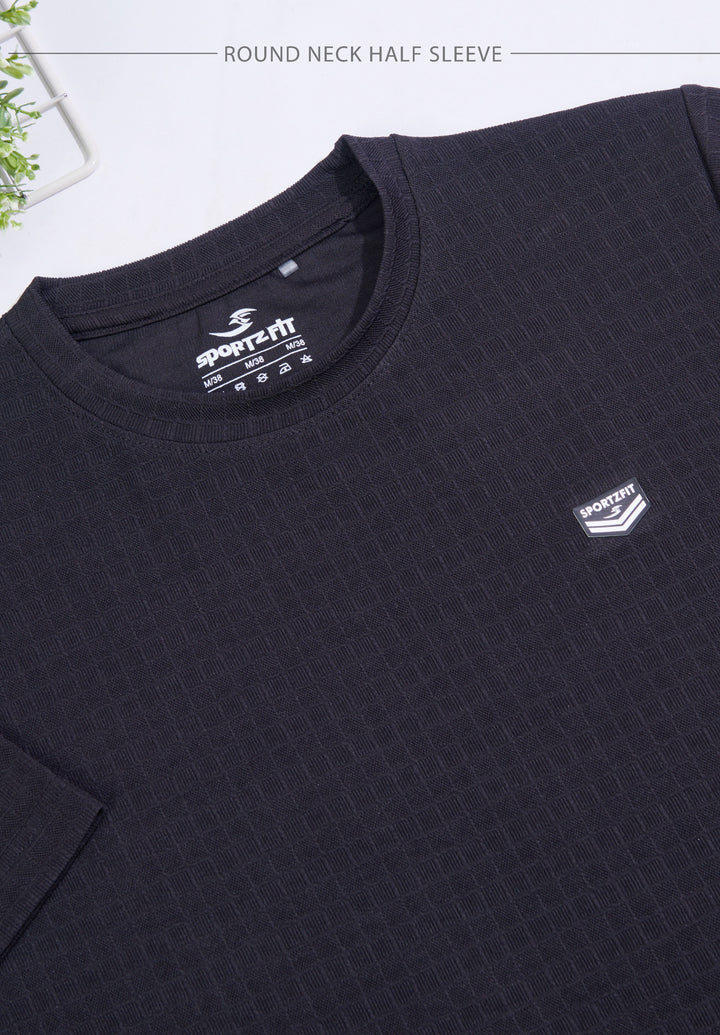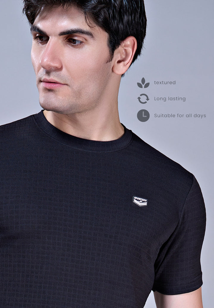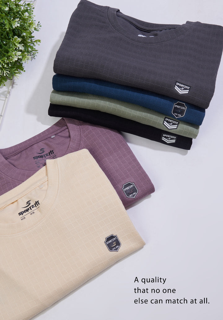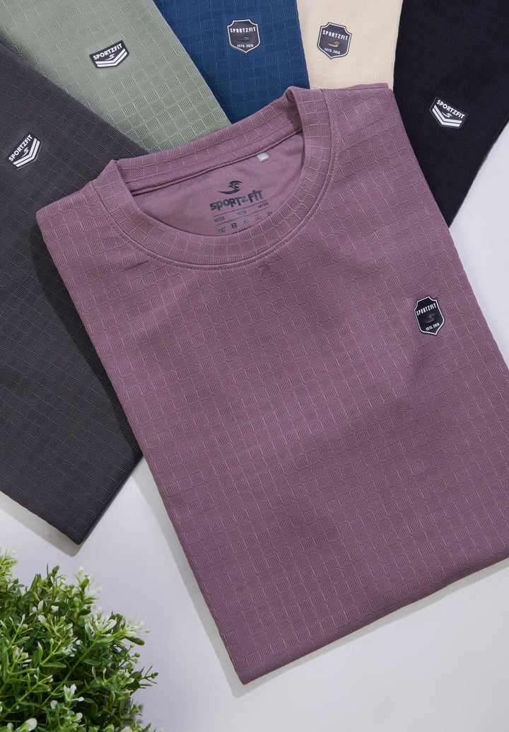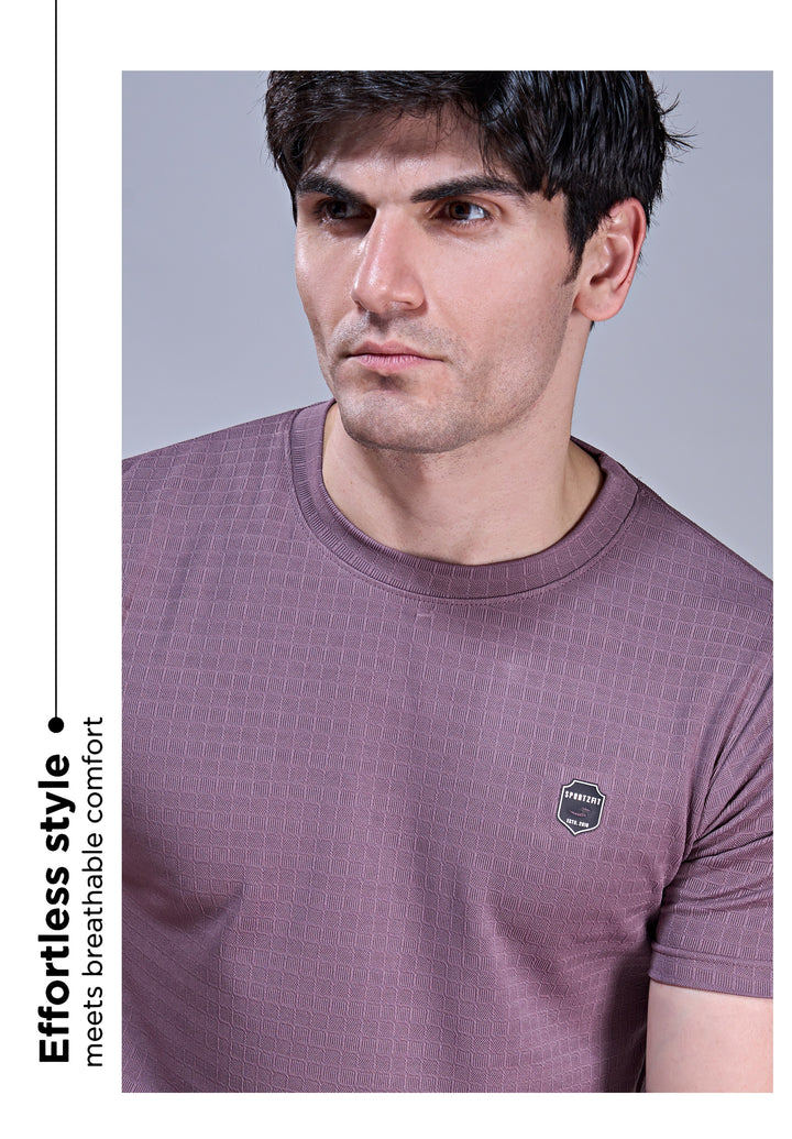 Crafted from breathable jacquard fabric, this crew neck T-shirt delivers the perfect mix of softness, stretch, and durability. Designed with the ideal GSM, it keeps you light and comfortable through workouts, travel, or daily wear. Style, texture, and performance — all in one tee.