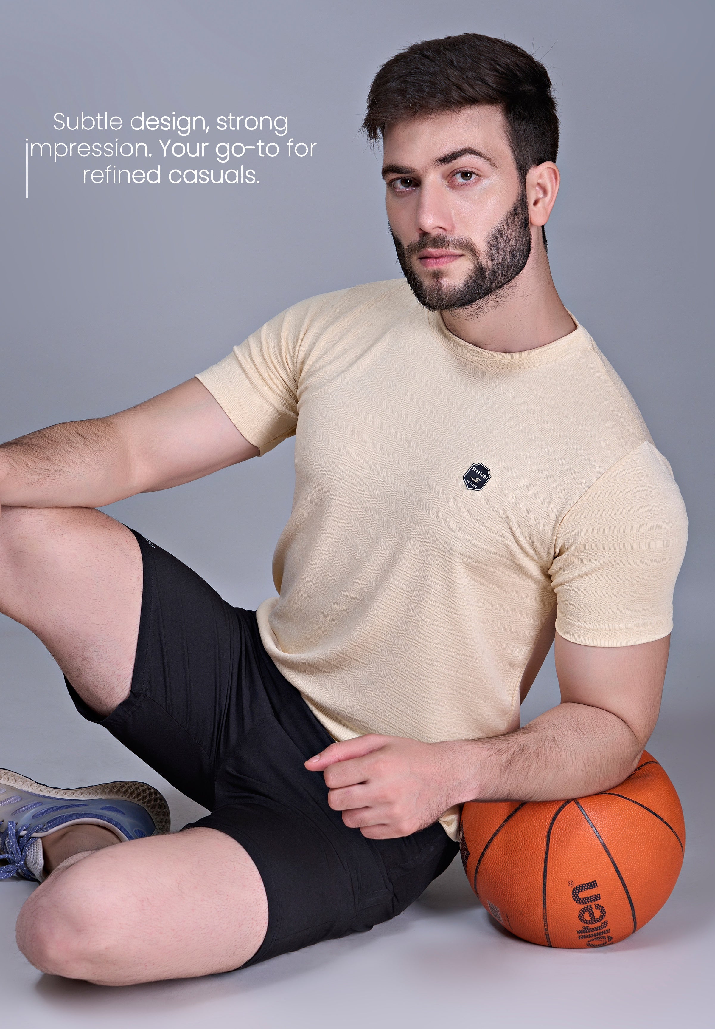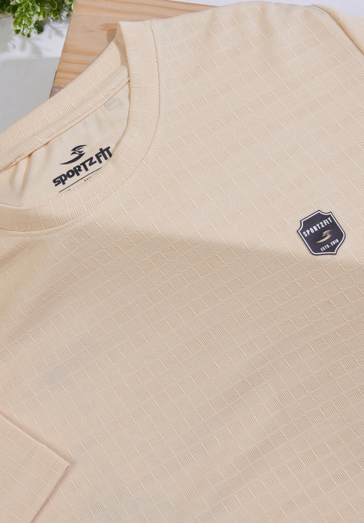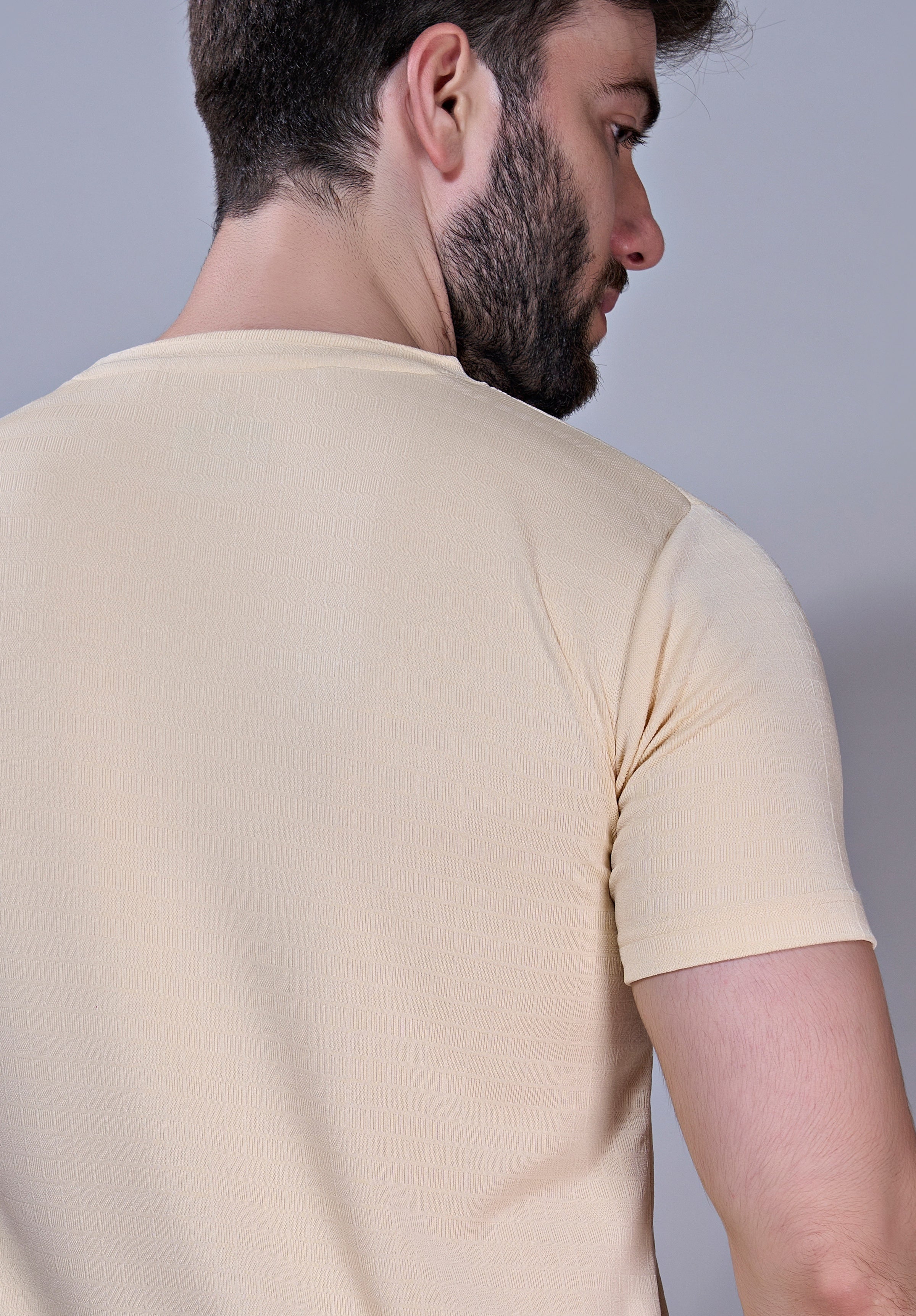 Crafted from breathable jacquard fabric, this crew neck T-shirt delivers the perfect mix of softness, stretch, and durability. Designed with the ideal GSM, it keeps you light and comfortable through workouts, travel, or daily wear. Style, texture, and performance — all in one tee.