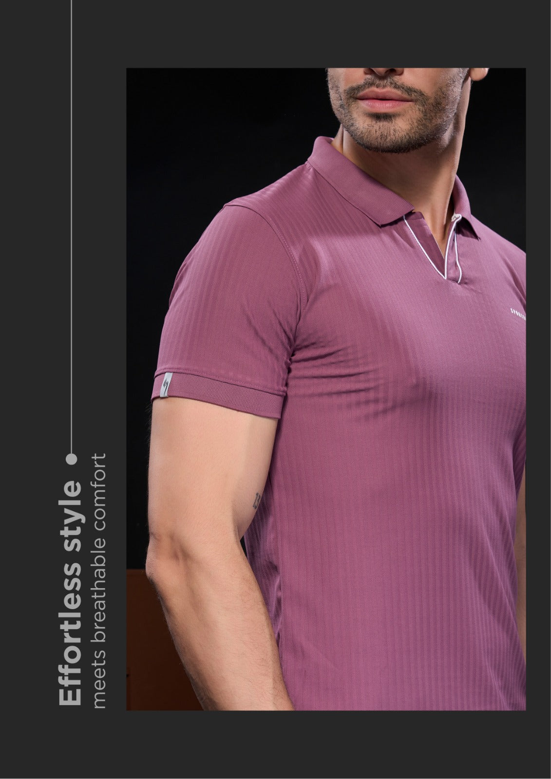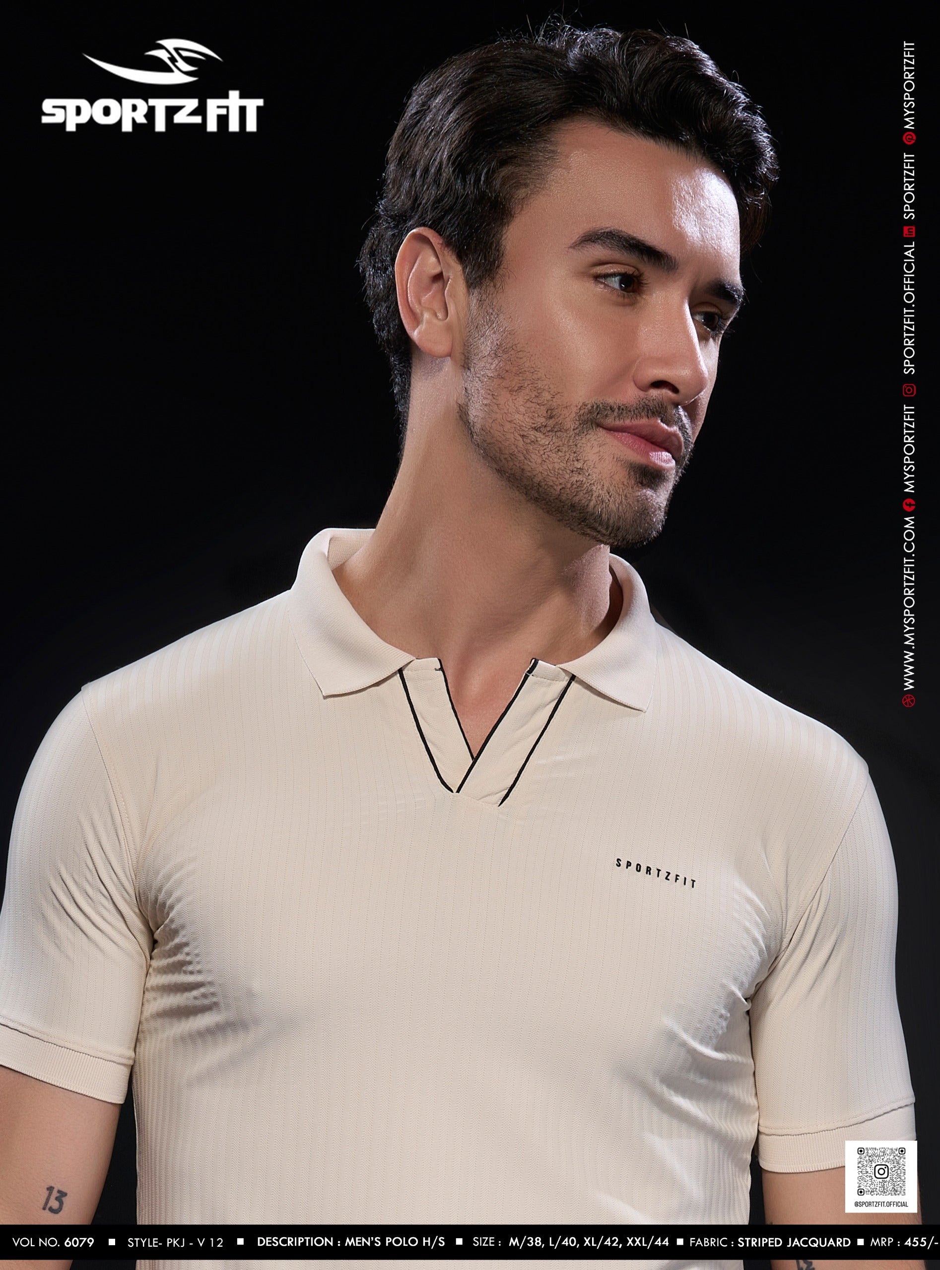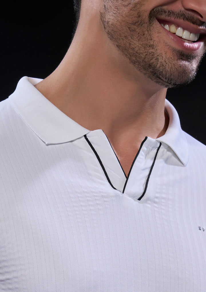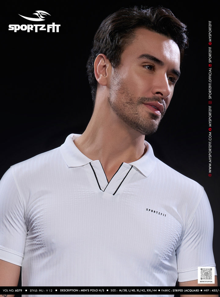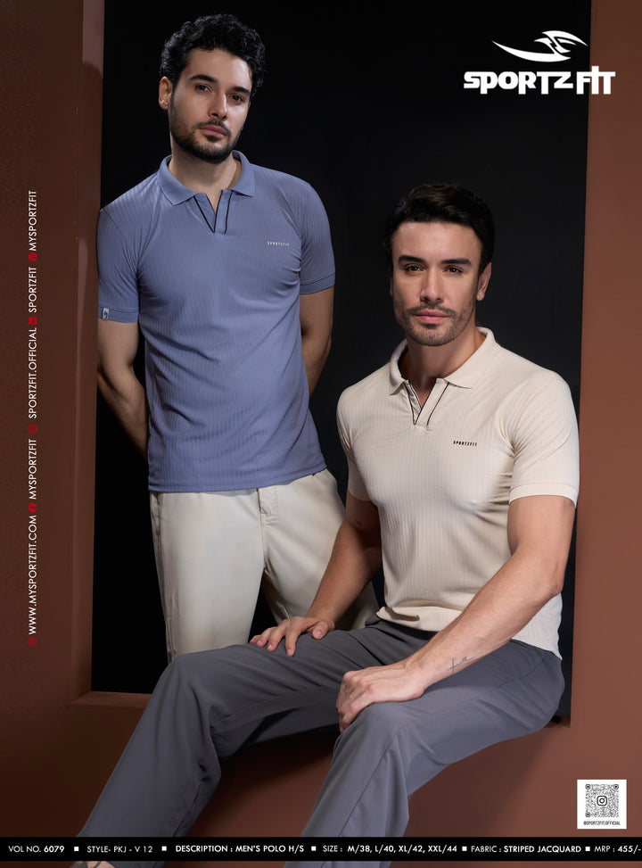 Step into effortless style and comfort with the SportzFit Polo Tee. Designed with a unique V-cut placket and contrast piping for a sporty edge, it’s finished with smart sleeve cuff detailing for a refined, premium look. Perfect for active days or casual outings.