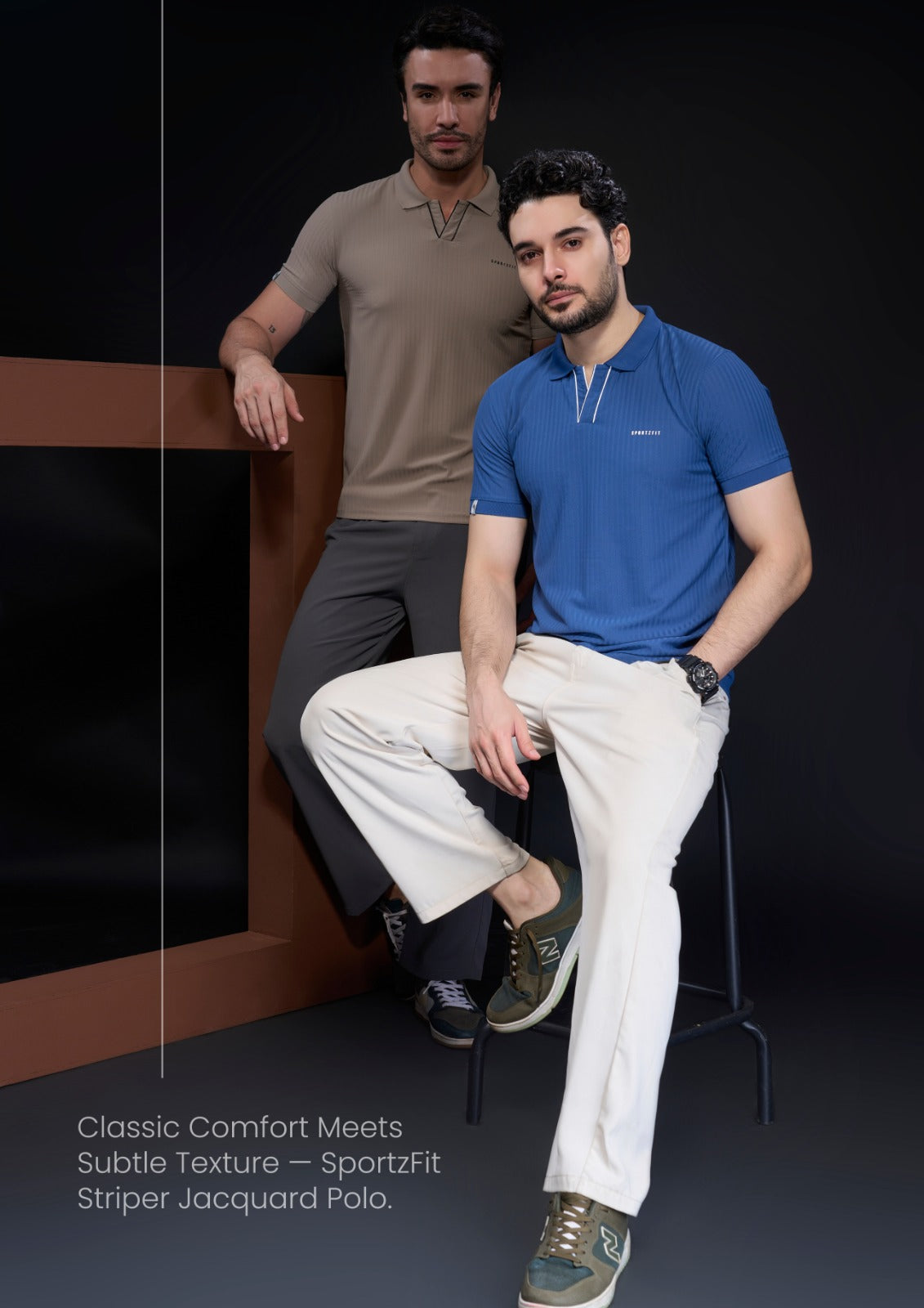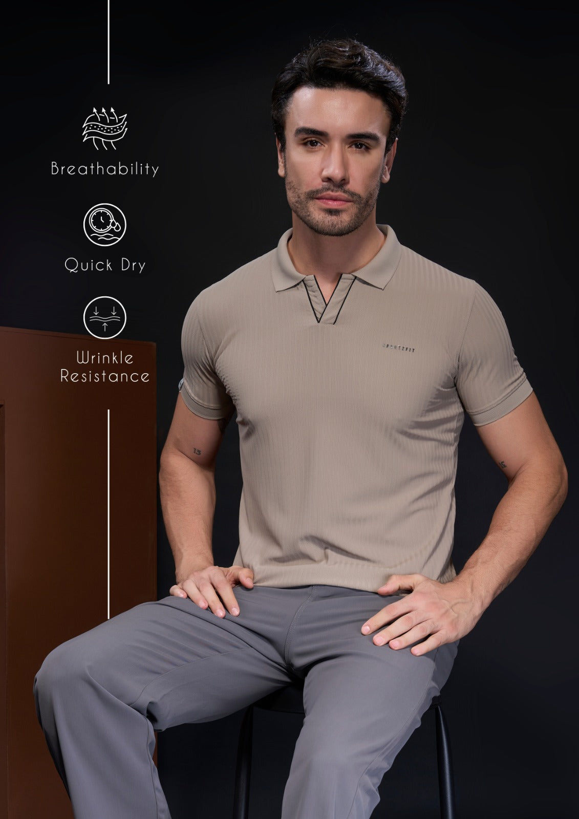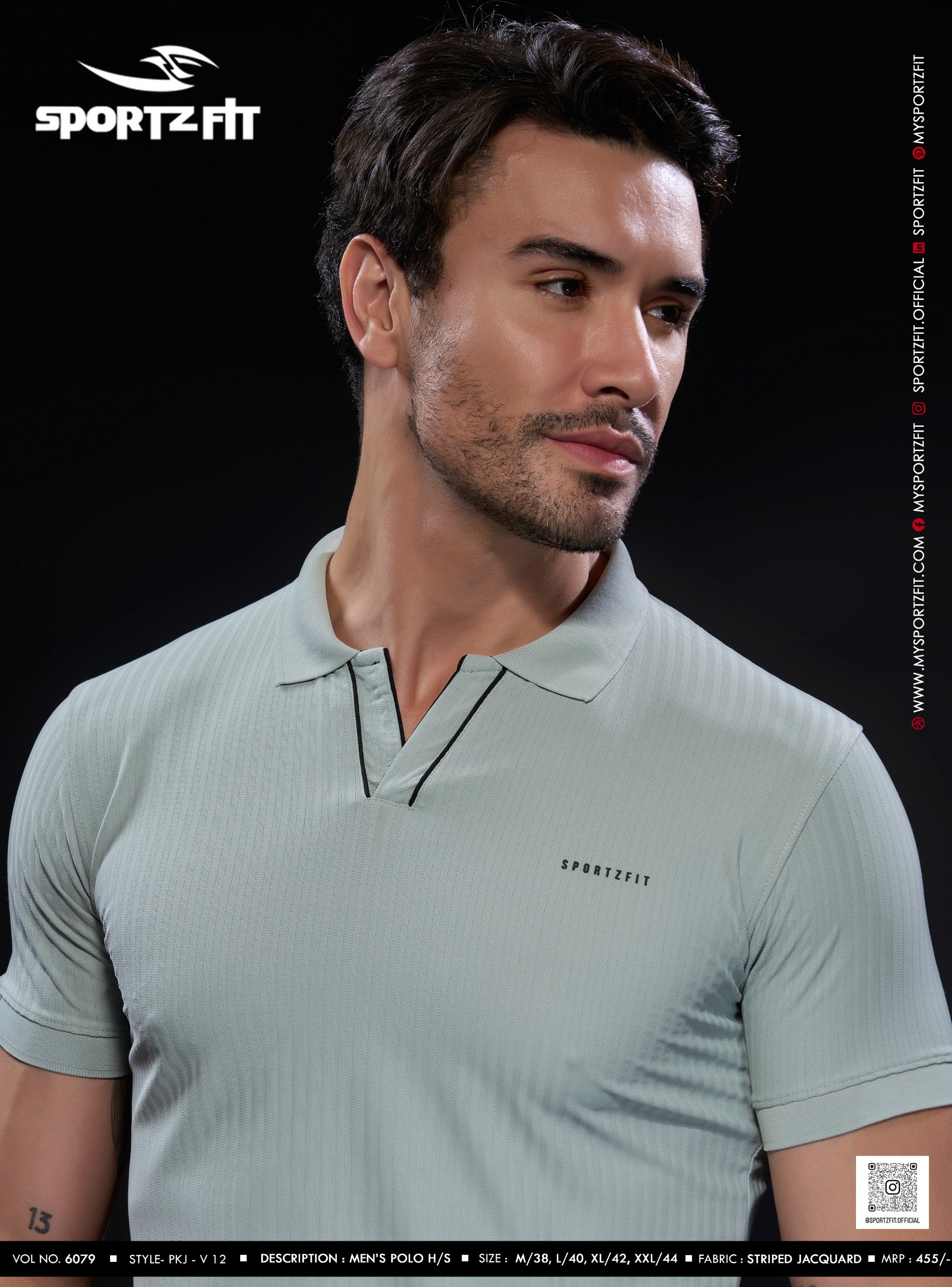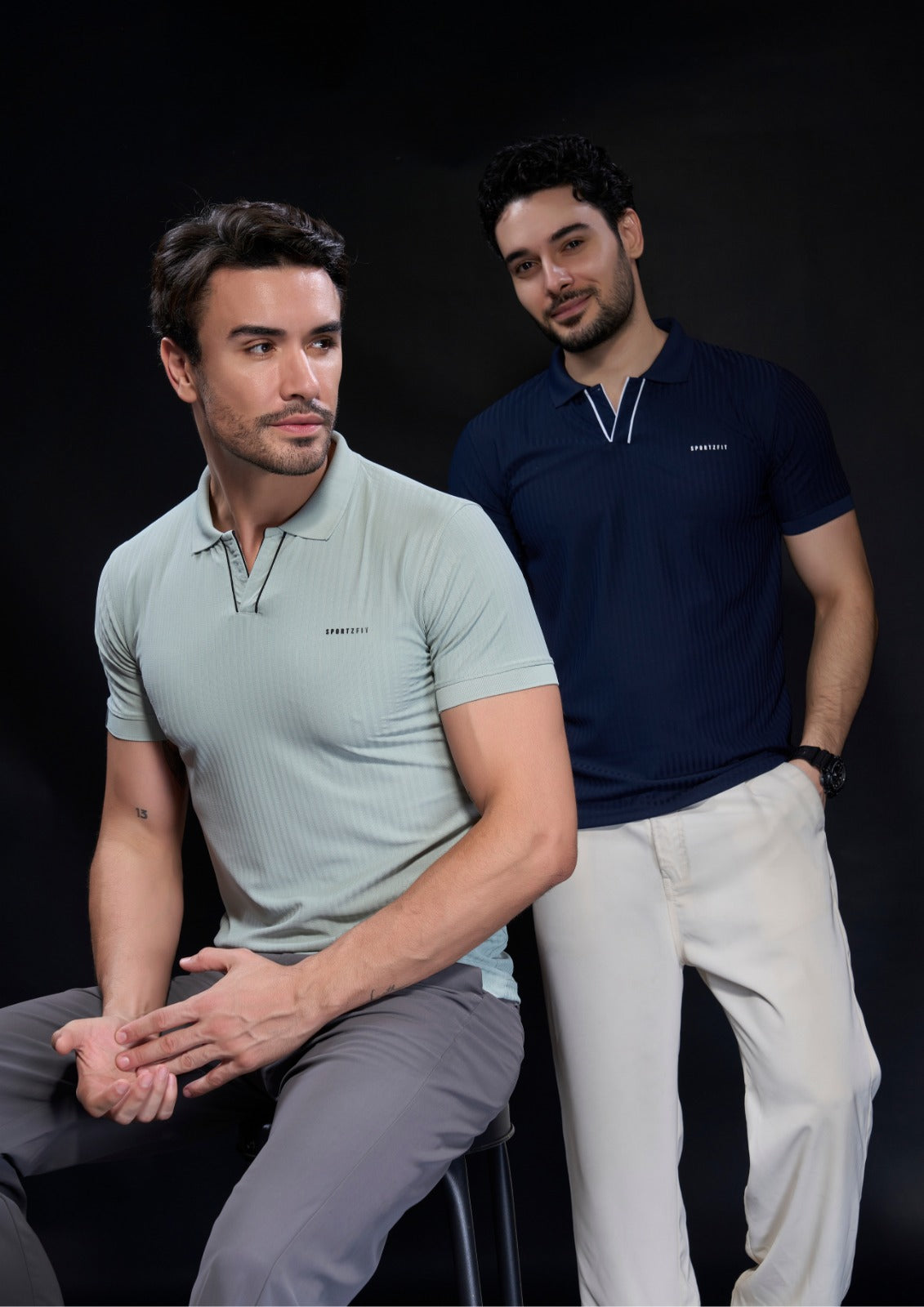Step into effortless style and comfort with the SportzFit Polo Tee. Designed with a unique V-cut placket and contrast piping for a sporty edge, it’s finished with smart sleeve cuff detailing for a refined, premium look. Perfect for active days or casual outings.