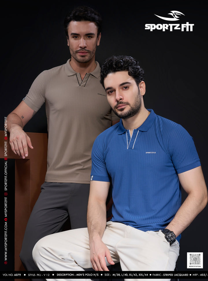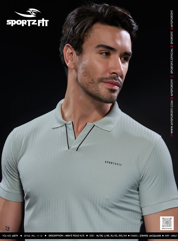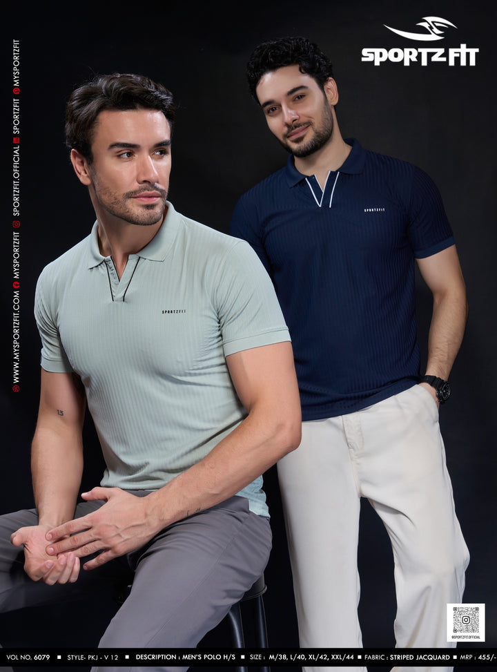 Men's Jacquard Solid Polo with V-Placket (6079)