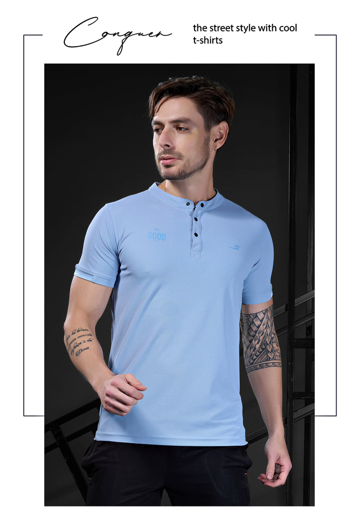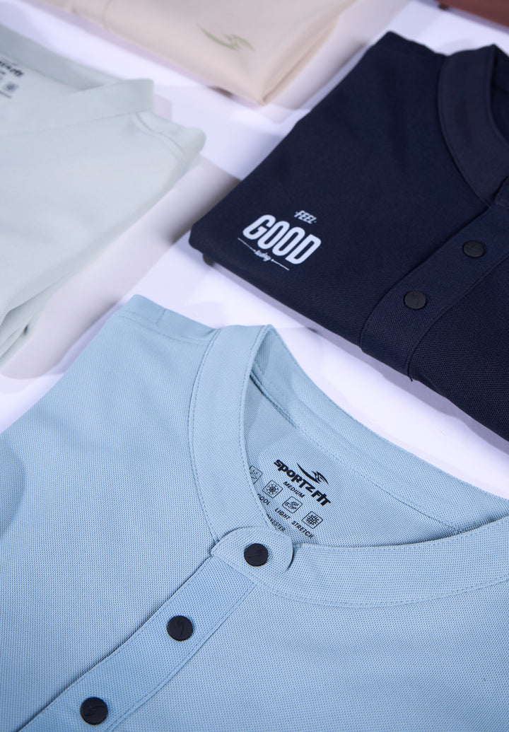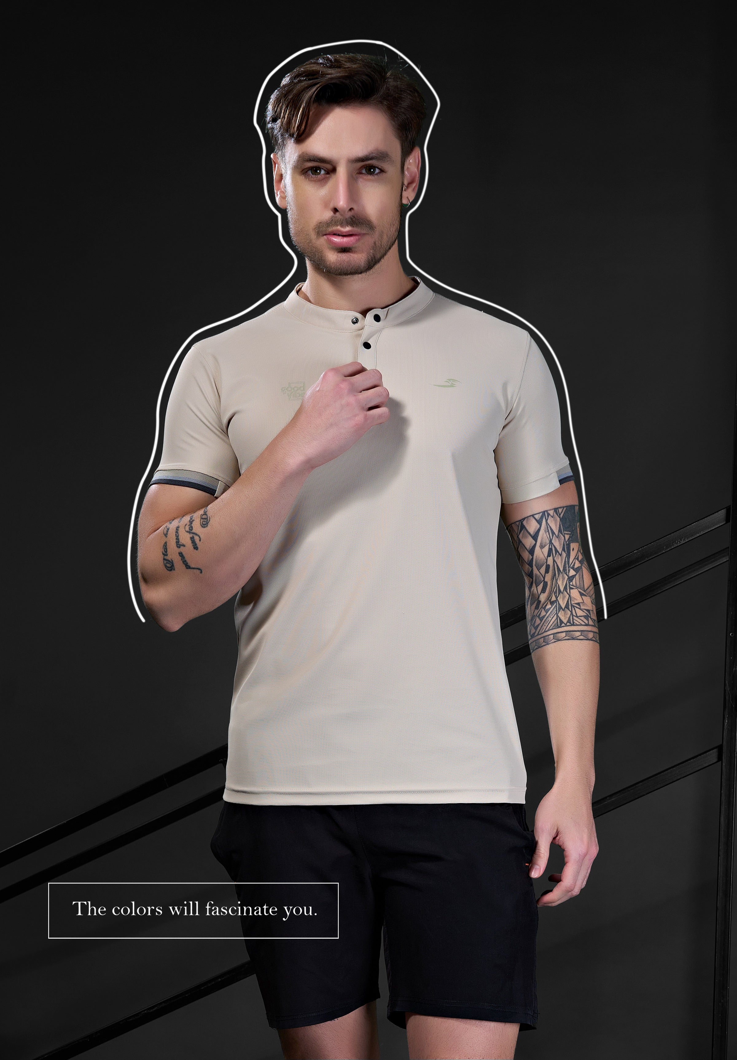 Step up your everyday style with the Men’s Henley Neck Half Sleeve Tee. Designed with a sleek double sticker detail and contrasting sleeve tipping, it blends effortless comfort with a refined, classy edge — perfect for daily wear.