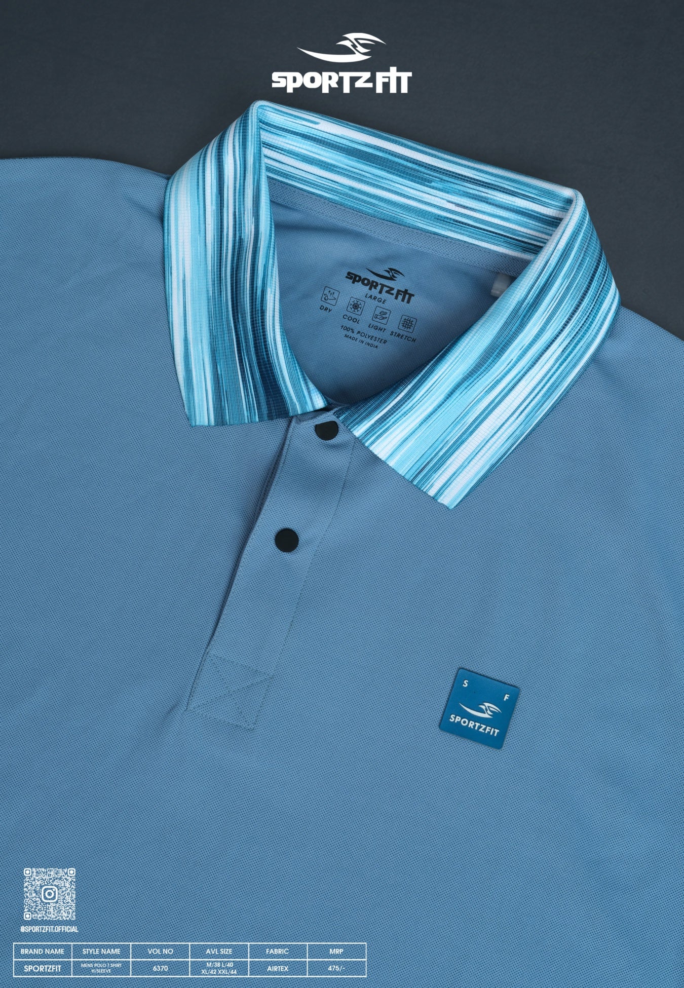 Featuring a distinctive Grindle collar, premium PK fabric, and signature SportzFit branding, this polo combines style, comfort, and exclusivity in one must-have piece.