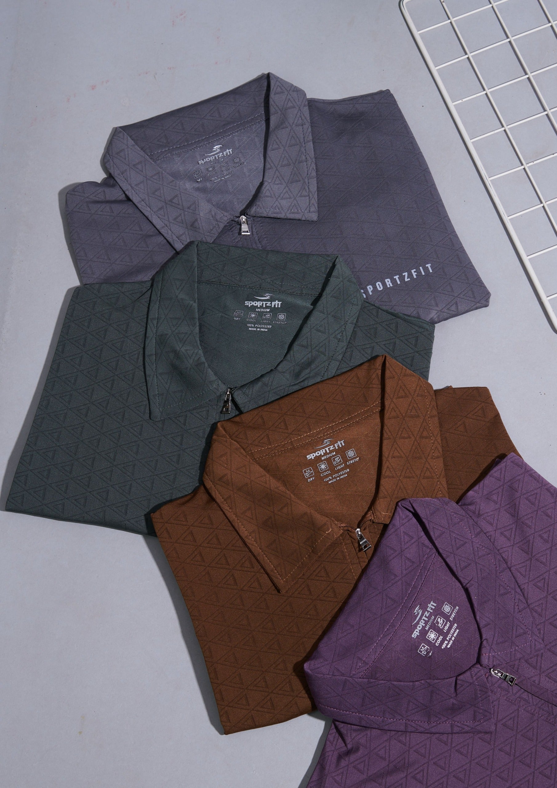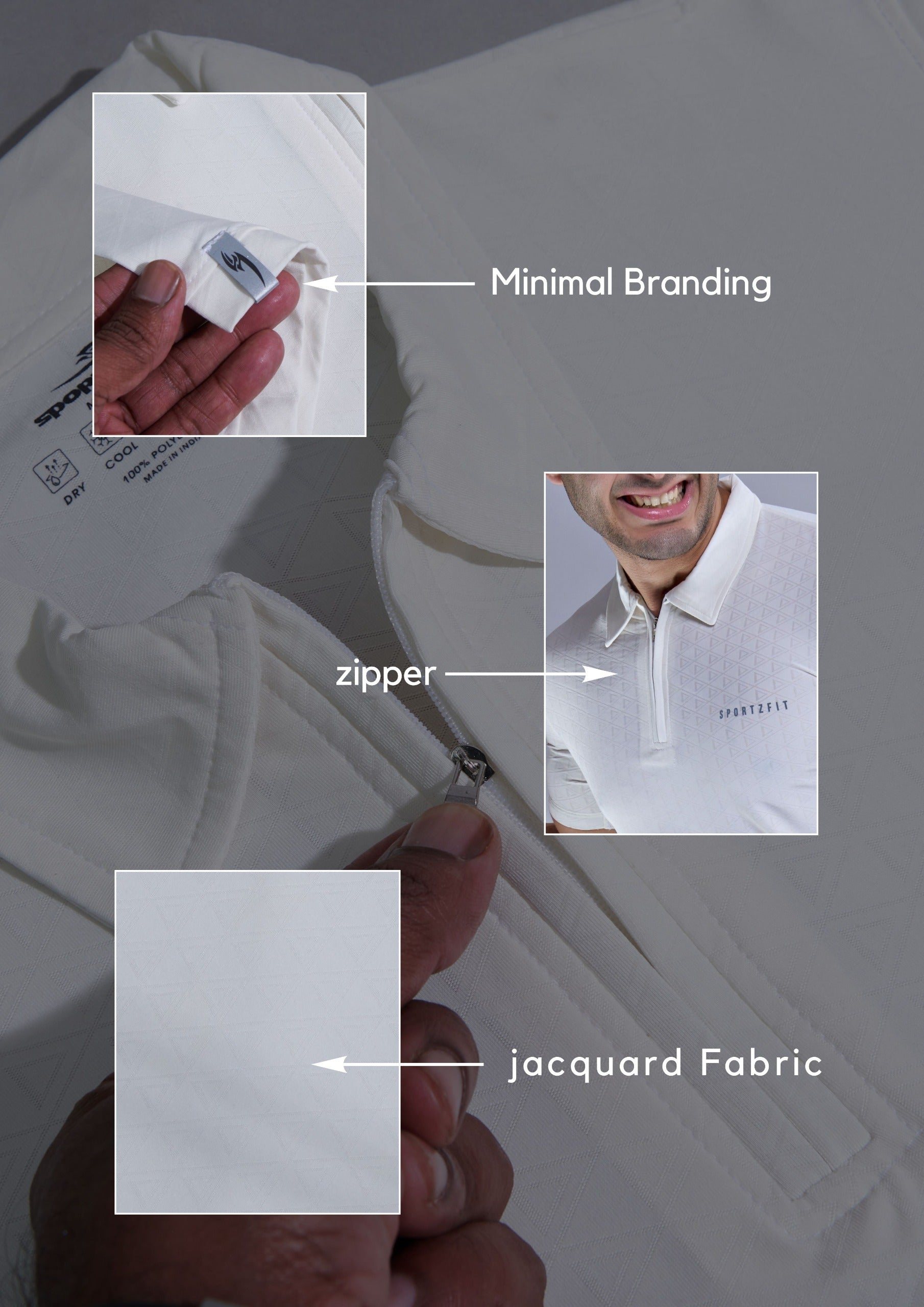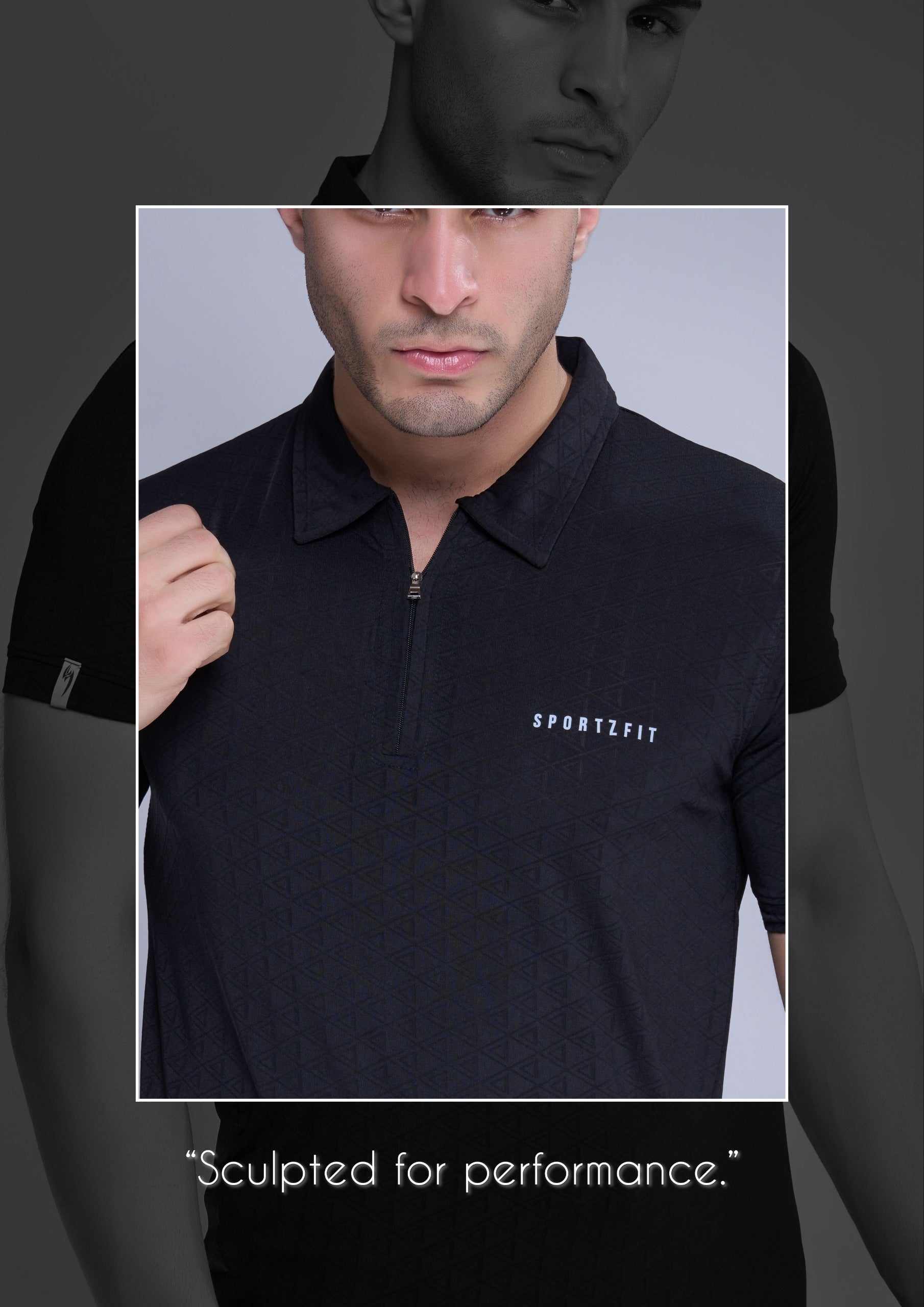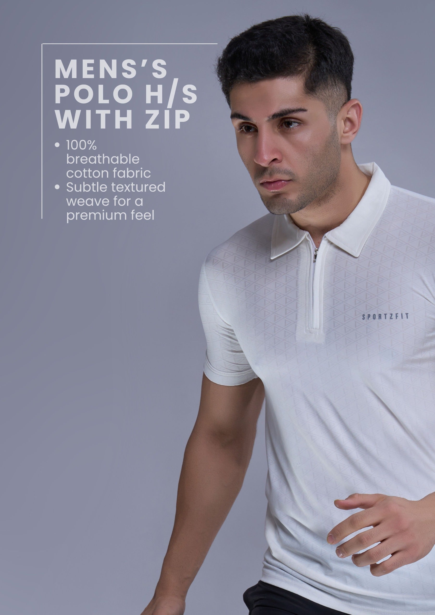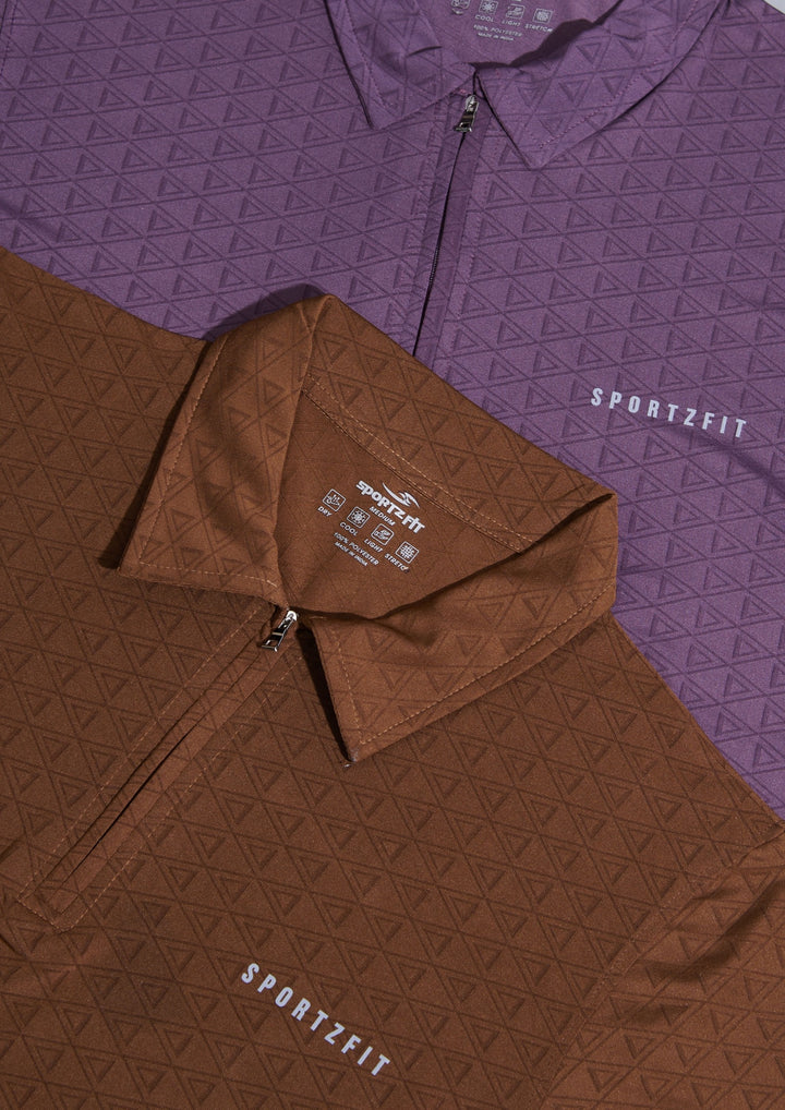 Elevate your essentials with the SportzFit Jacquard Zip Polo — crafted from geometry-patterned Jacquard fabric with moisture-wicking UltraWick® technology for superior comfort. Finished with a refined zip placket and structured self collar, it blends modern style with all-day performance — from the gym floor to dinner plans.