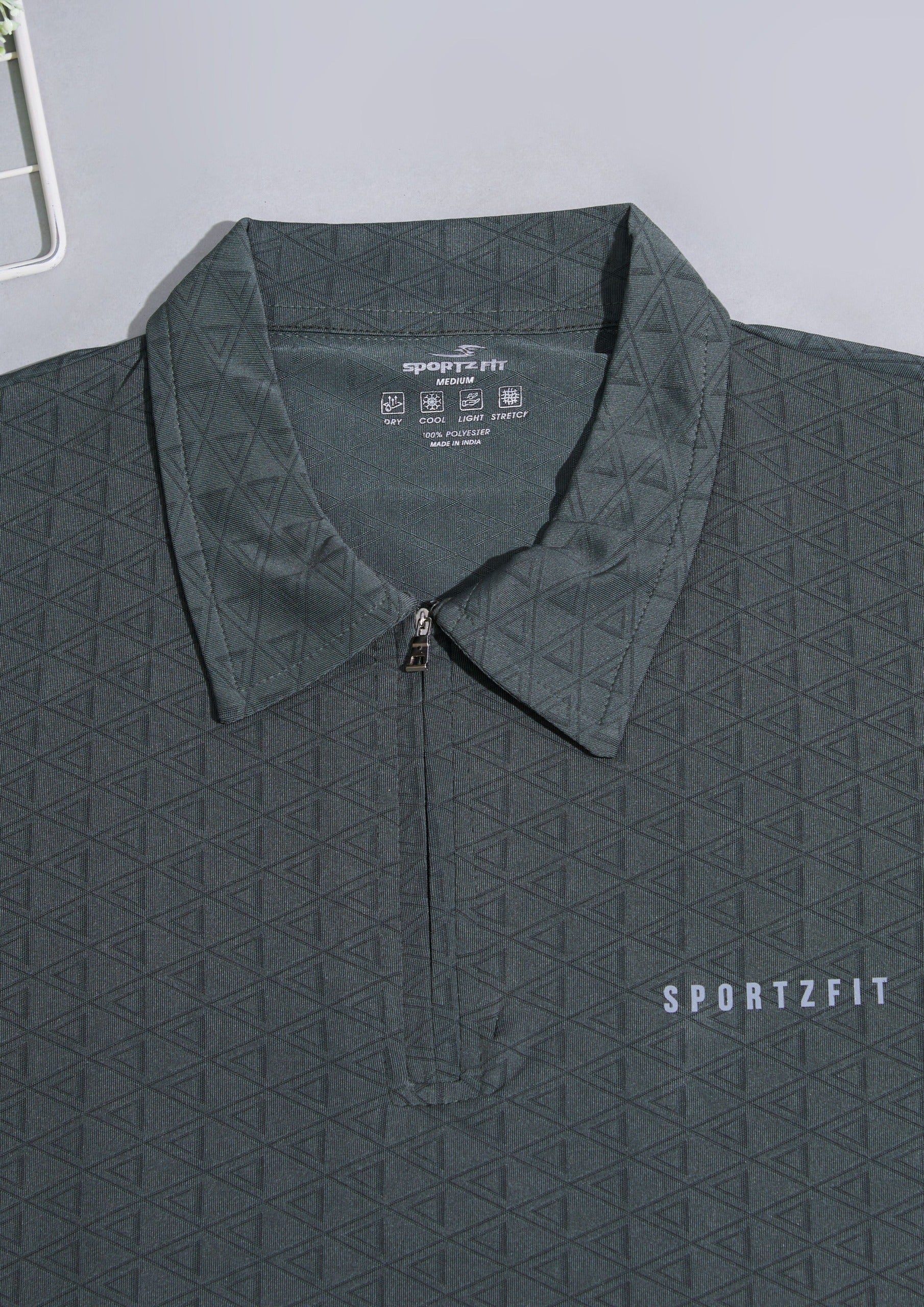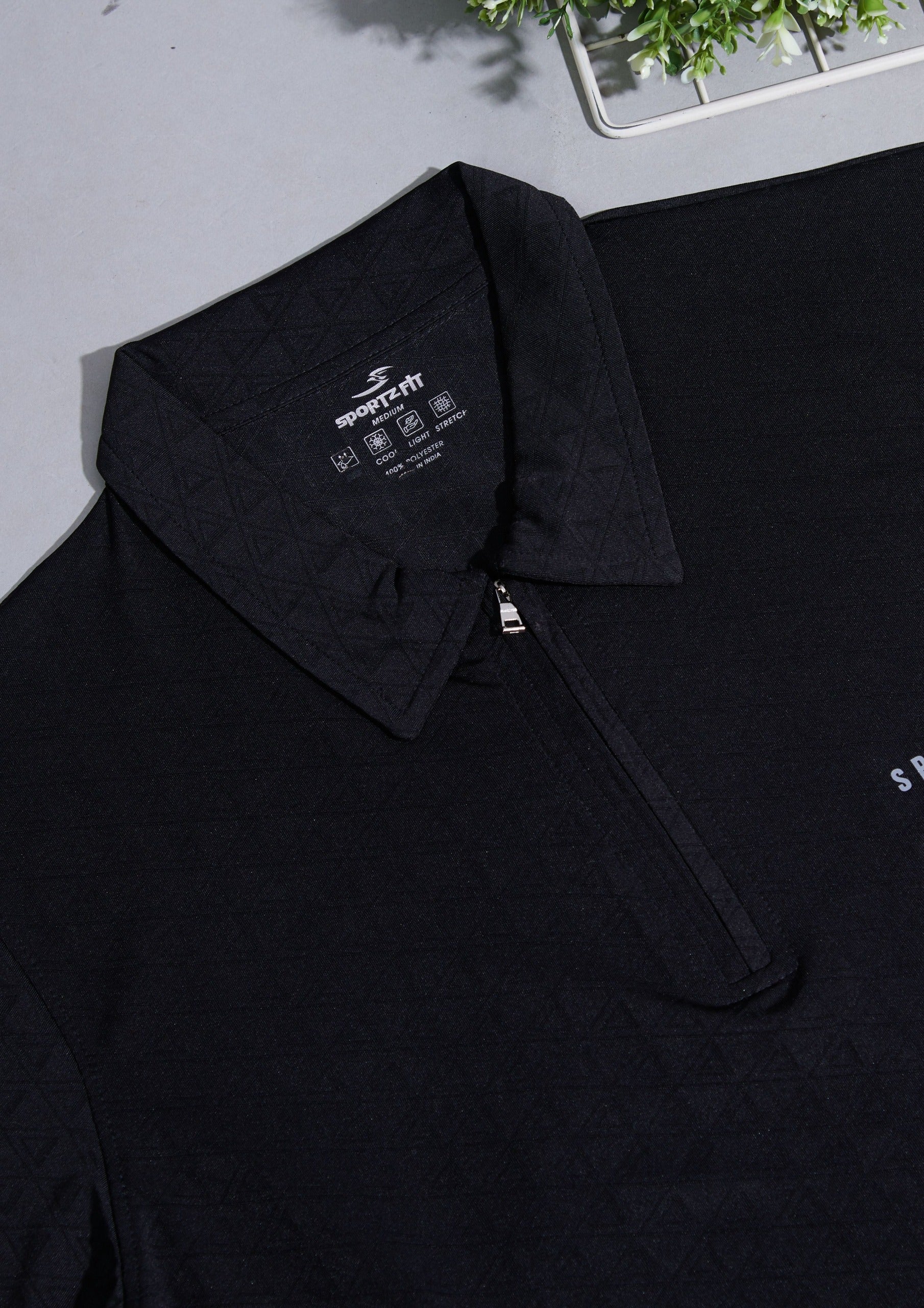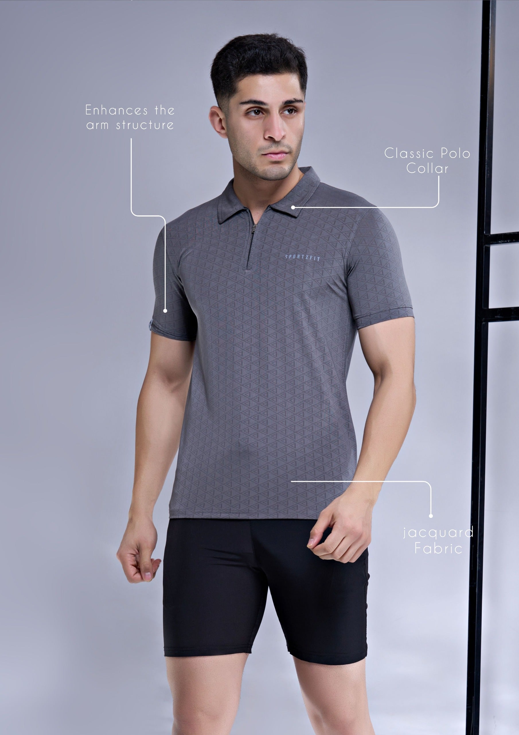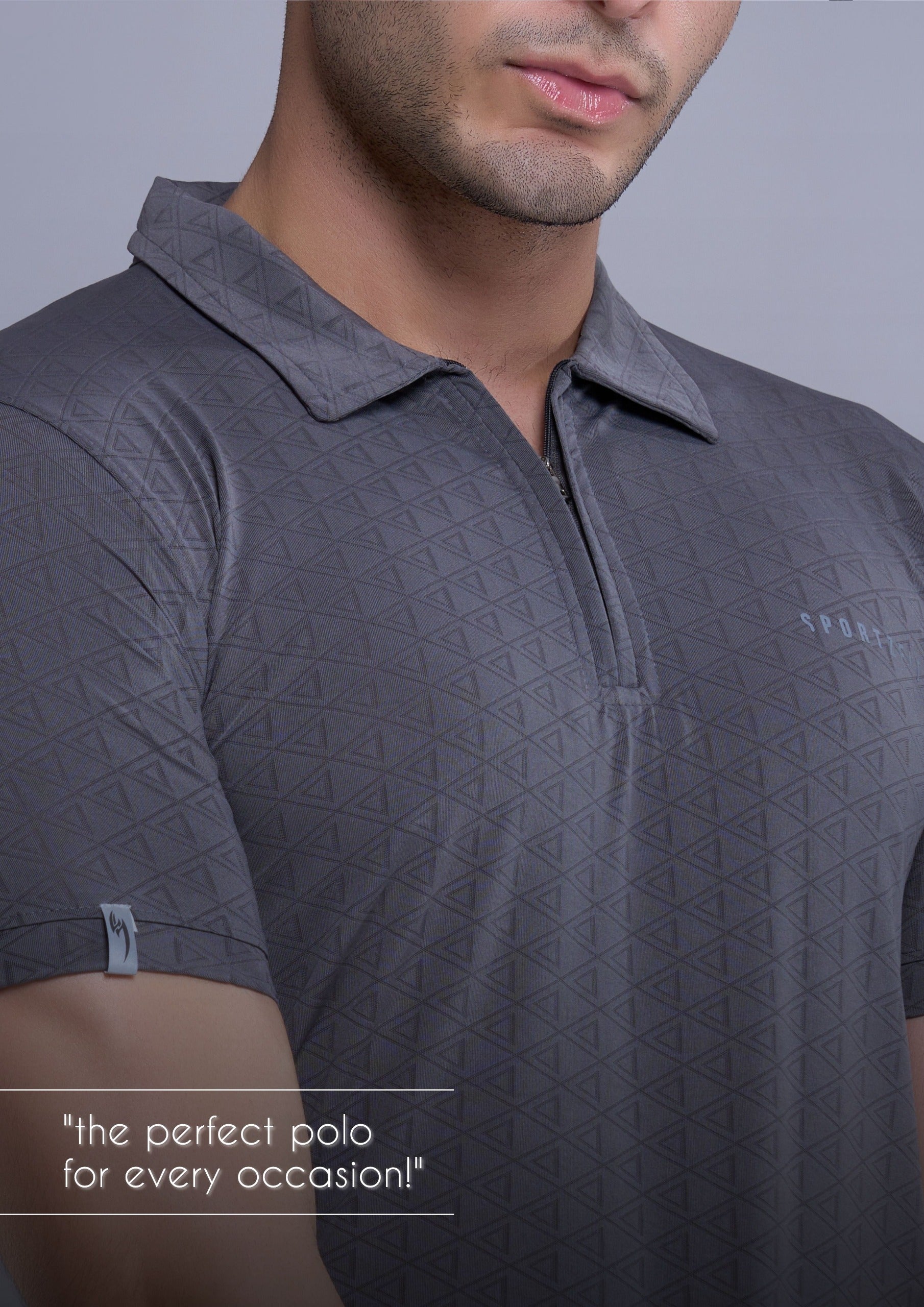 Elevate your essentials with the SportzFit Jacquard Zip Polo — crafted from geometry-patterned Jacquard fabric with moisture-wicking UltraWick® technology for superior comfort. Finished with a refined zip placket and structured self collar, it blends modern style with all-day performance — from the gym floor to dinner plans.