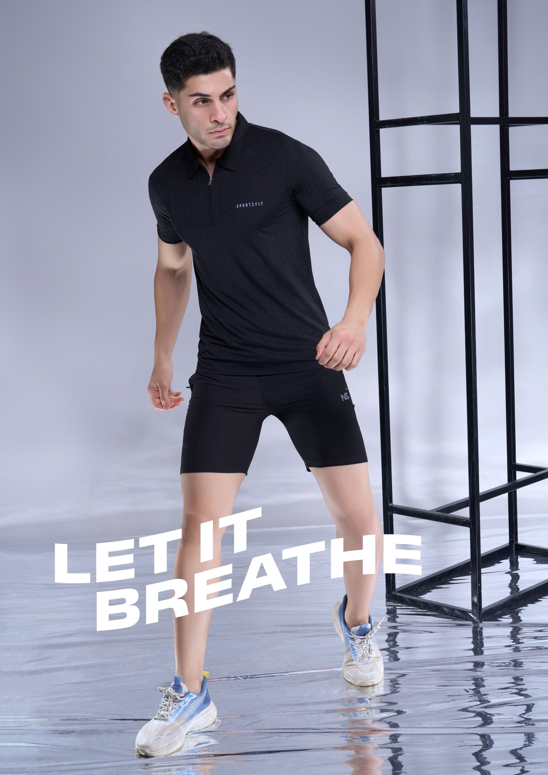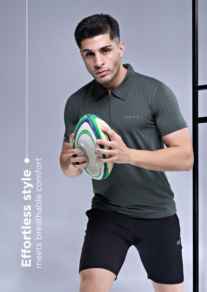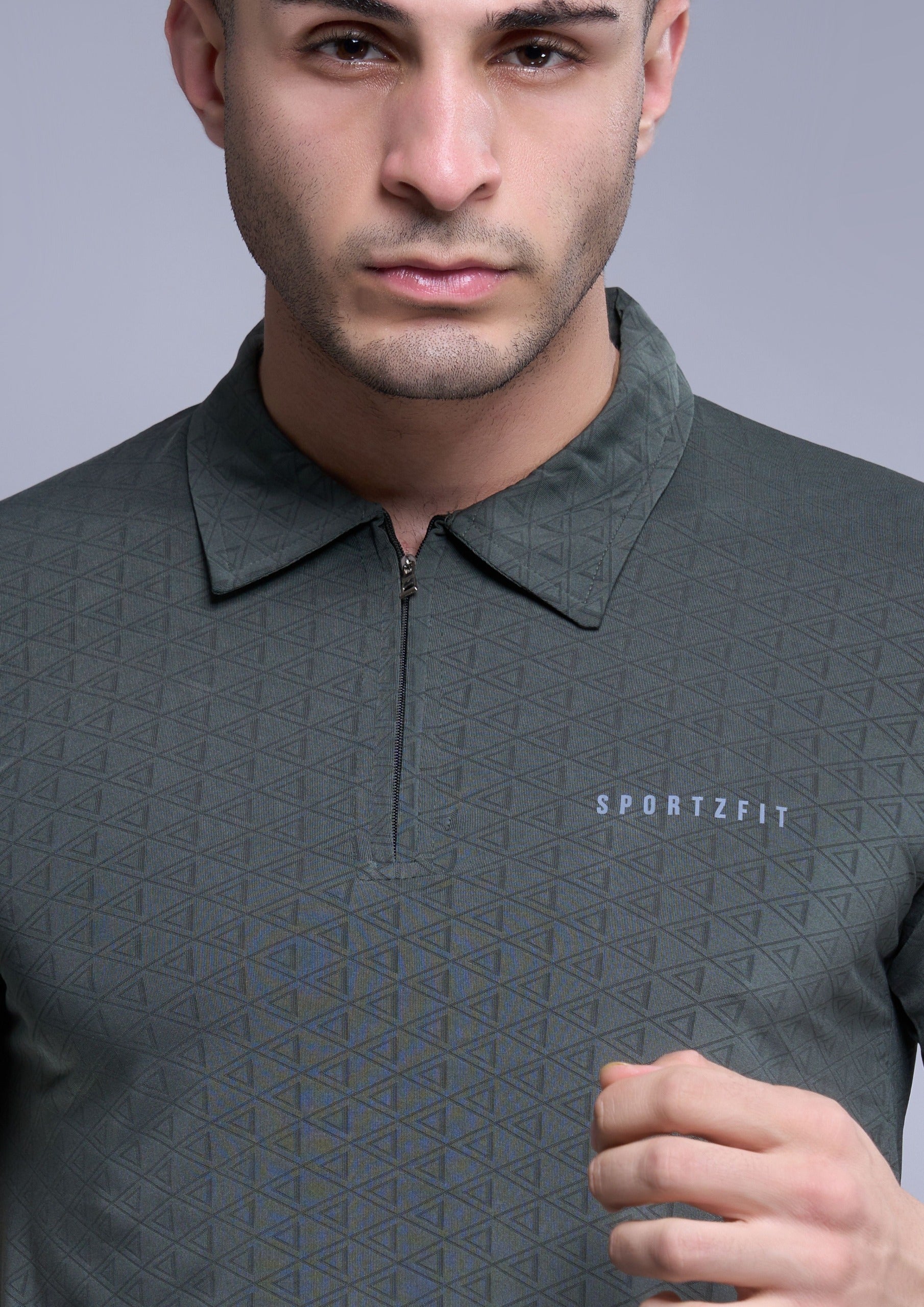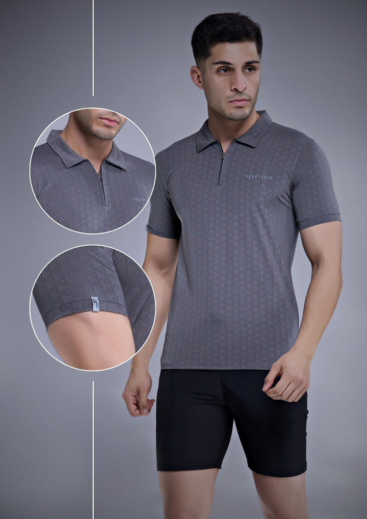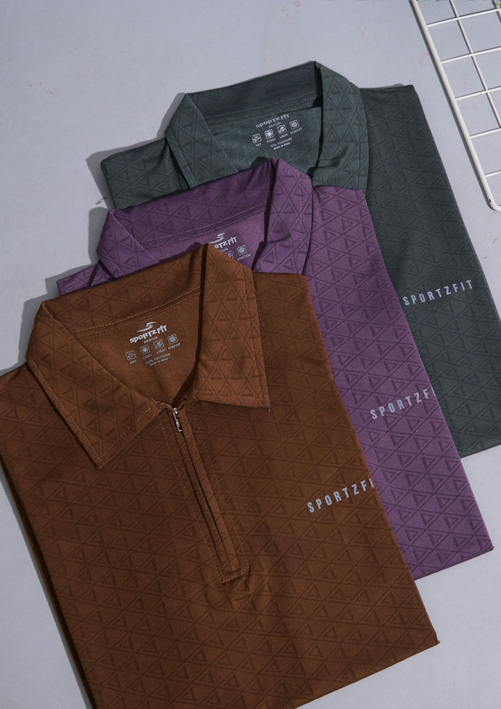 Elevate your essentials with the SportzFit Jacquard Zip Polo — crafted from geometry-patterned Jacquard fabric with moisture-wicking UltraWick® technology for superior comfort. Finished with a refined zip placket and structured self collar, it blends modern style with all-day performance — from the gym floor to dinner plans.