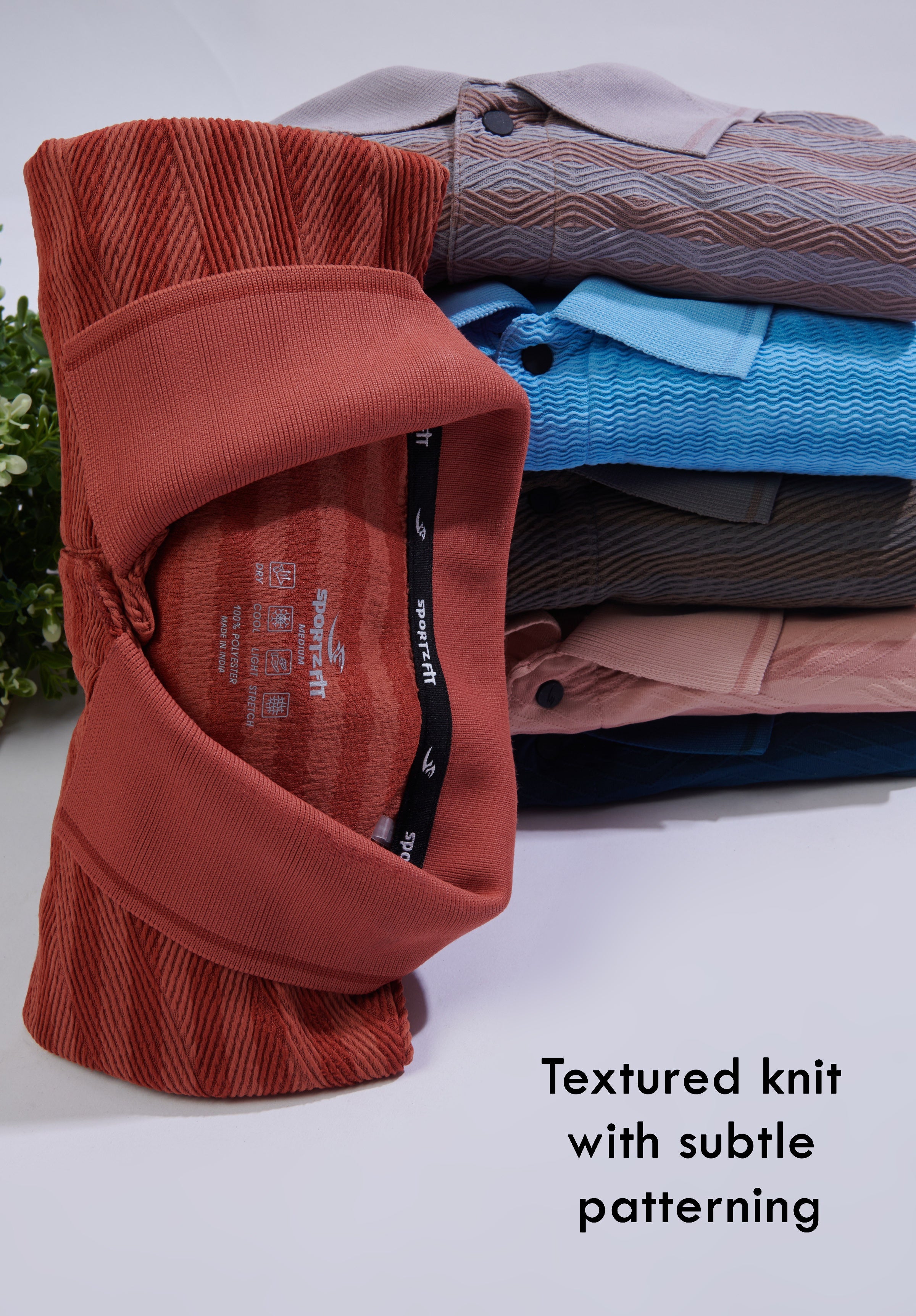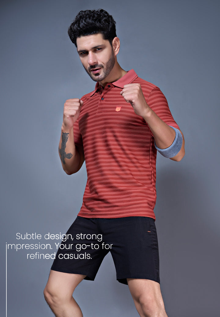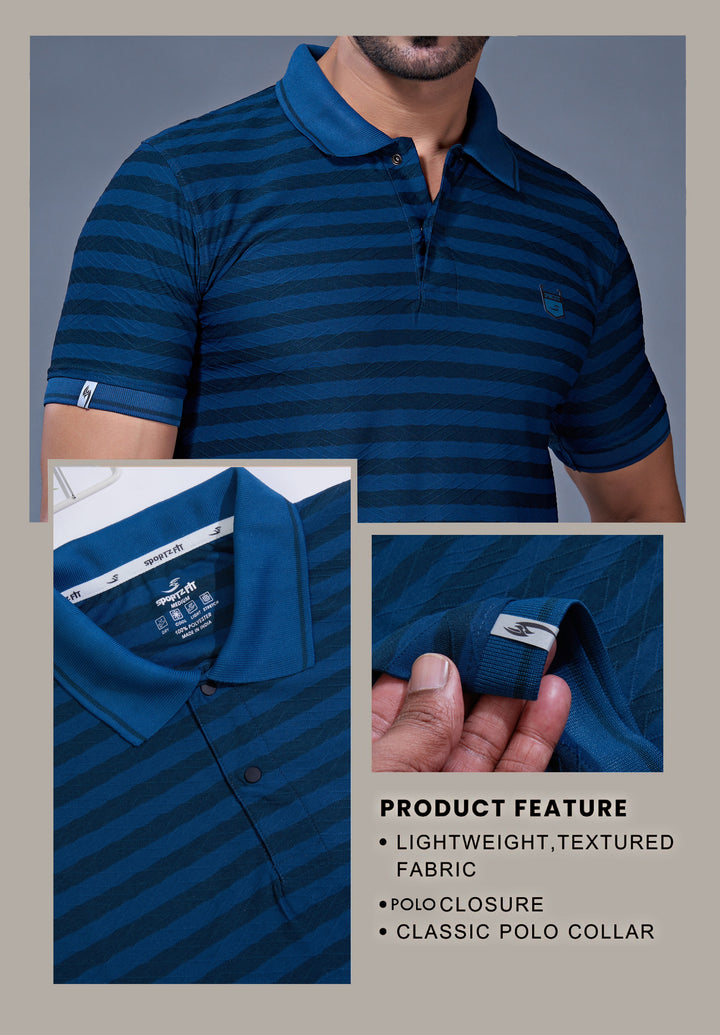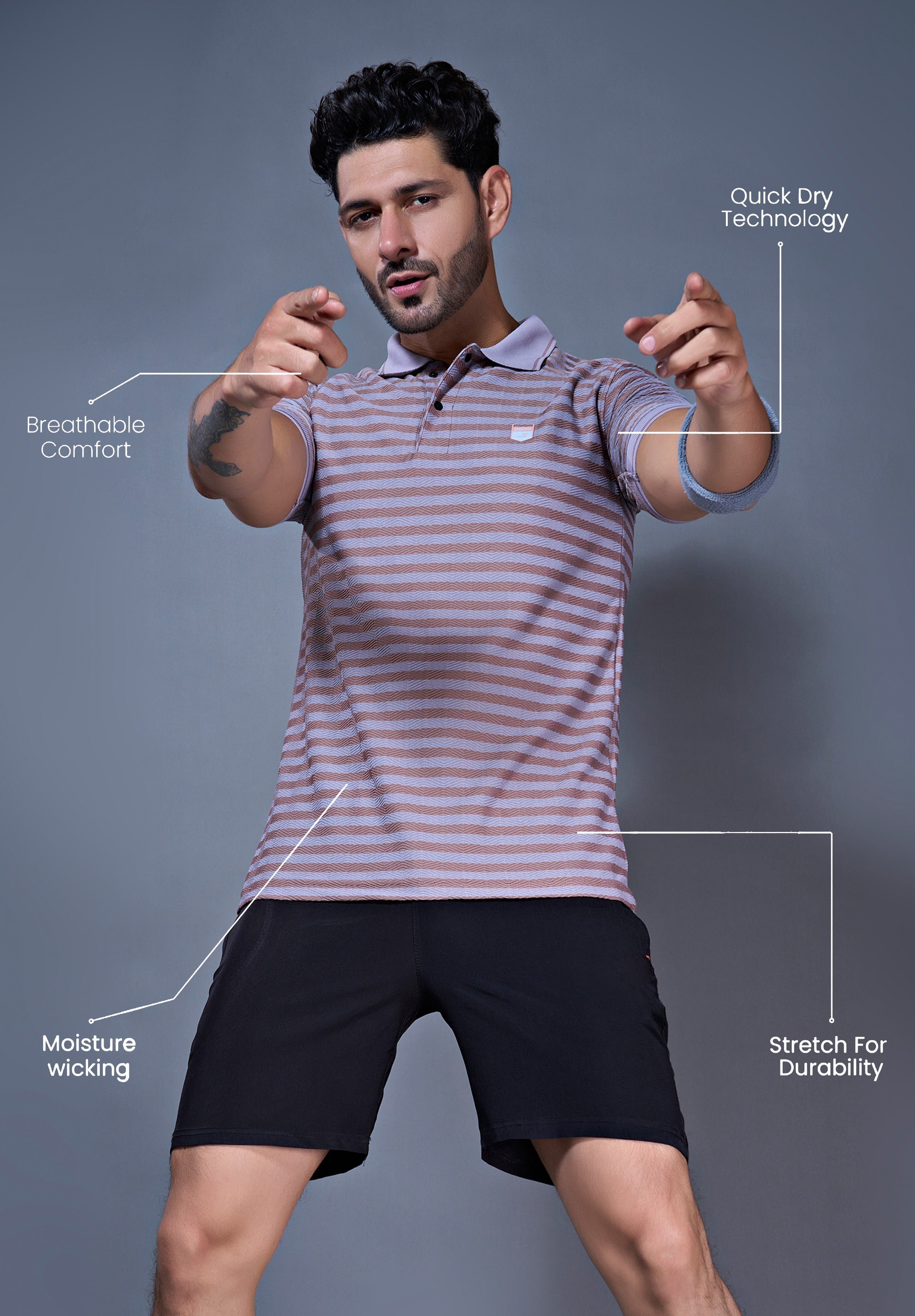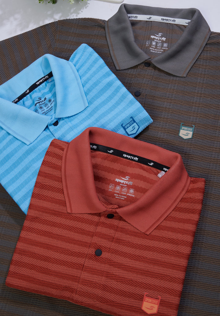 Level up your everyday essentials with this jacquard striper polo that speaks in textures, not noise. With minimal branding and a premium hand-feel, it combines a heritage-inspired stripe pattern with a modern, refined silhouette — understated, elevated, unmistakably SportzFit.