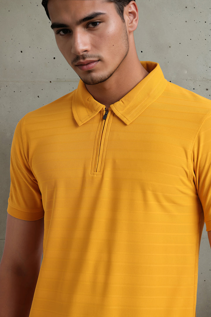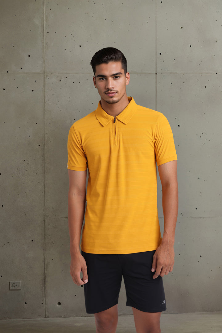 This men’s solid slim fit polo t-shirt with a zipper closure offers a streamlined look and performance-ready comfort. Made from moisture-wicking, breathable, and lightweight fabric, it’s ideal for running, yoga, or training.