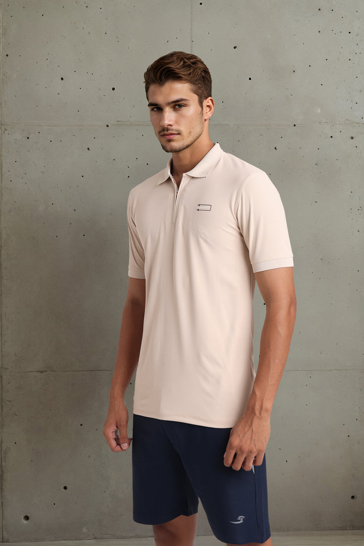 This men’s solid polo t-shirt with a sleek zipper closure combines functionality with modern design. Crafted from moisture-wicking, breathable, and lightweight fabric, it’s the perfect choice for running, yoga, or training sessions.